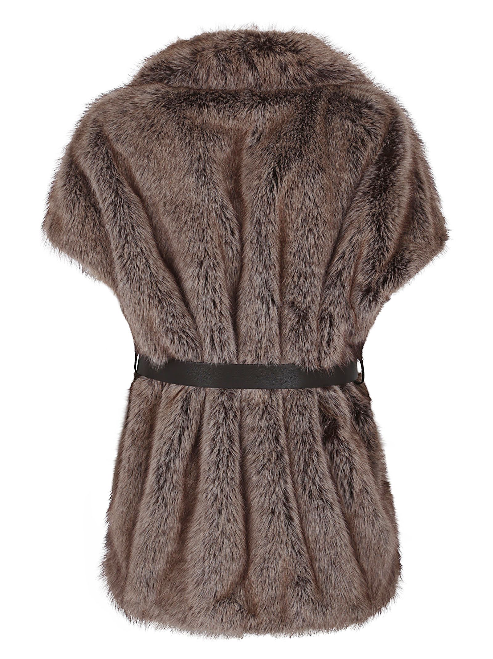 Gilet in ecopelliccia di PAROSH.Collo revers; senza maniche. Caratterizzato da cintura tono su tono.
