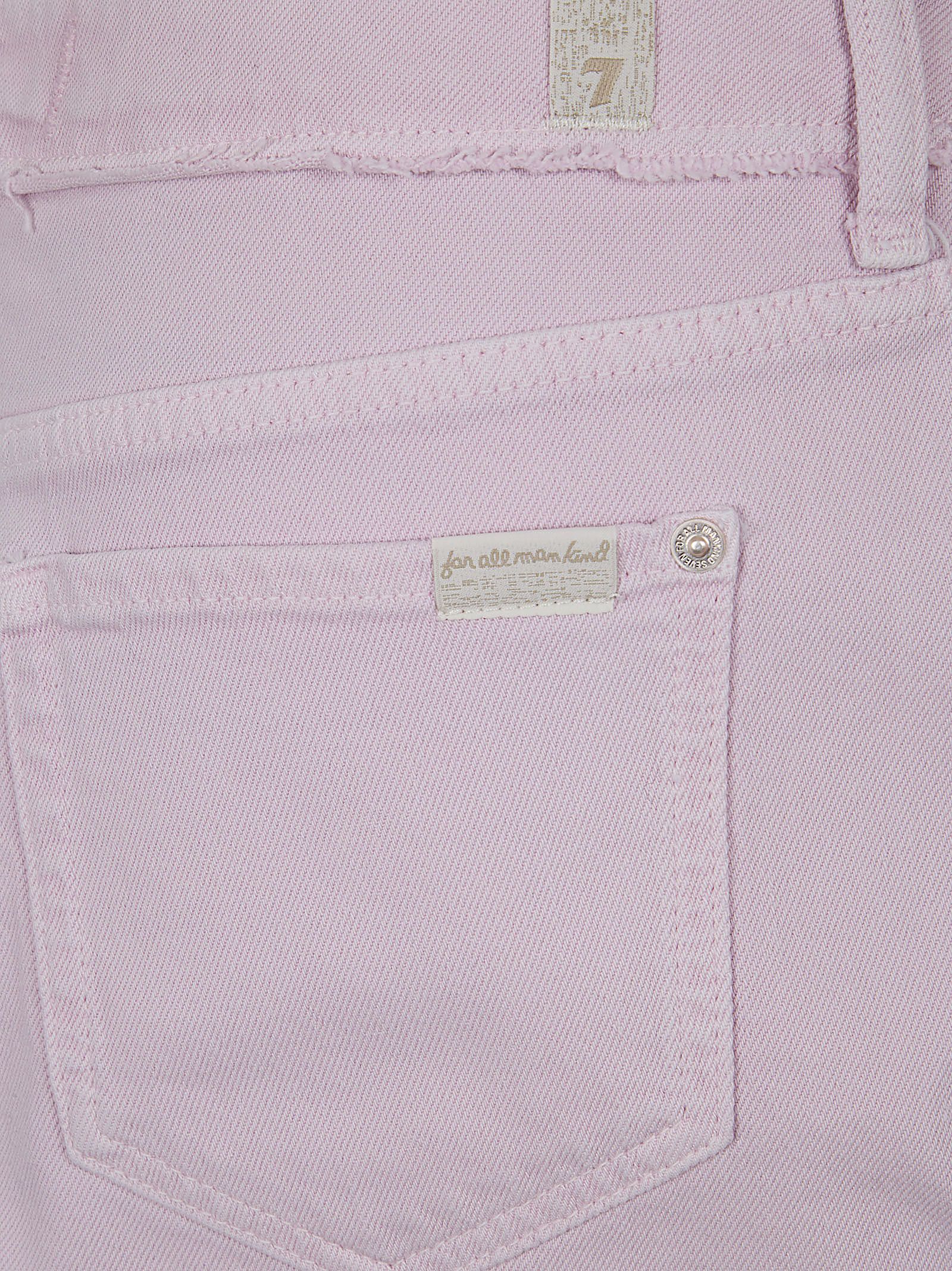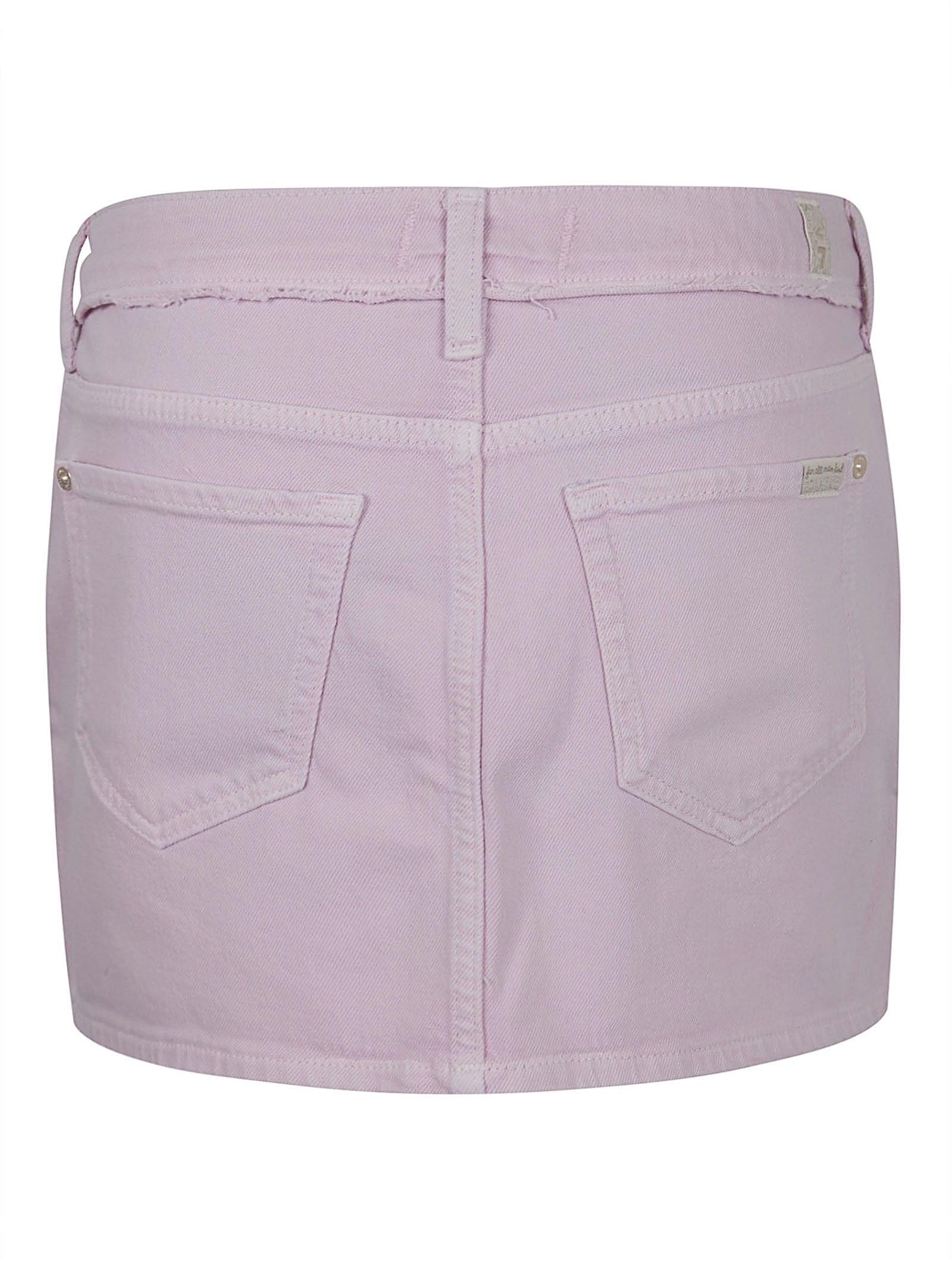 Gonna in denim di cotone di 7 FOR ALL MENKIND.Vita bassa; chiusura con cerniera e bottone; cinque tasche; design mini. Caratterizzata da fondo a taglio grezzo con leggero effetto consumato.