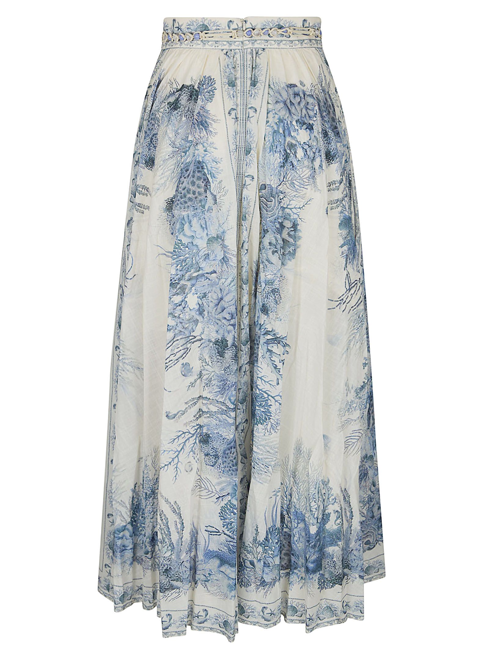 Gonna Wanderlust in cotone di ZIMMERMANN.Vita media aderente; chiusura con cerniera invisibile al centro sulla schiena; design vestibilità mexi e plissettature su tutto il capo.Caratterizzata da cintura rimovibile.