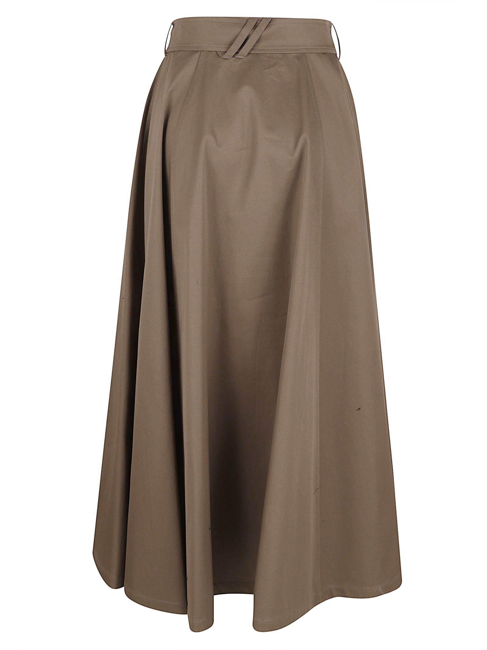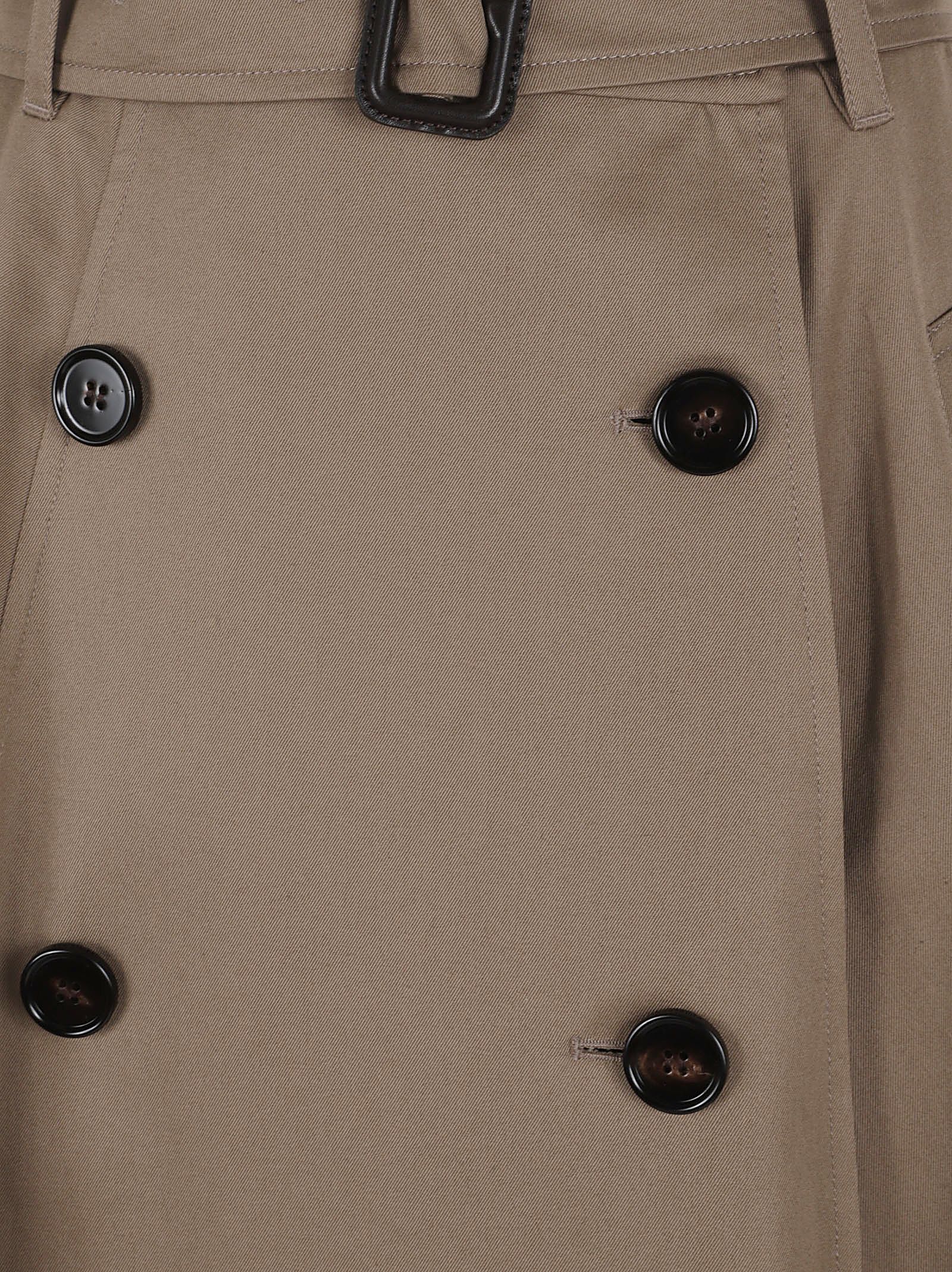 marrone cotone linea a trapezio decorazione con bottoni vita con cintura