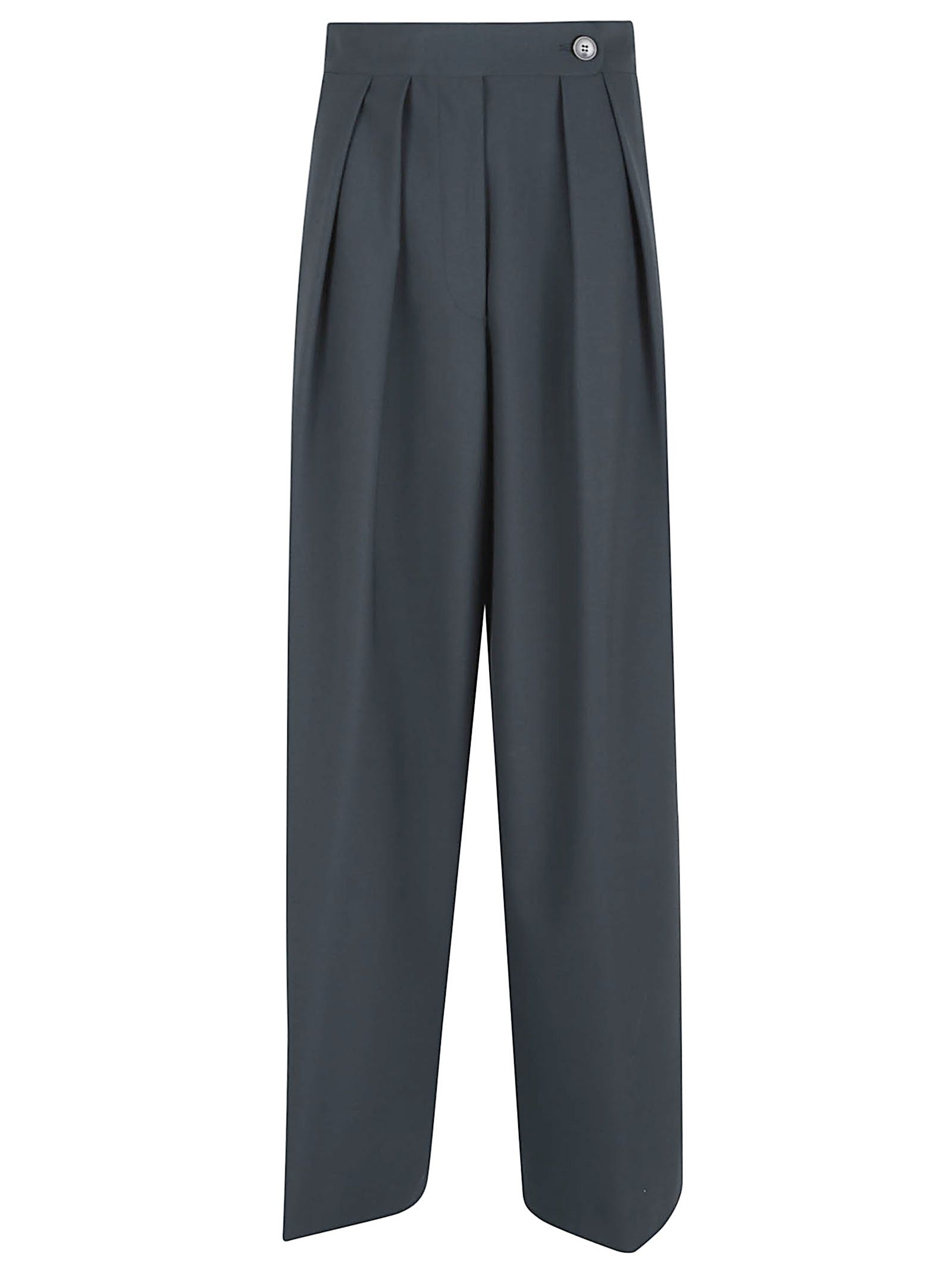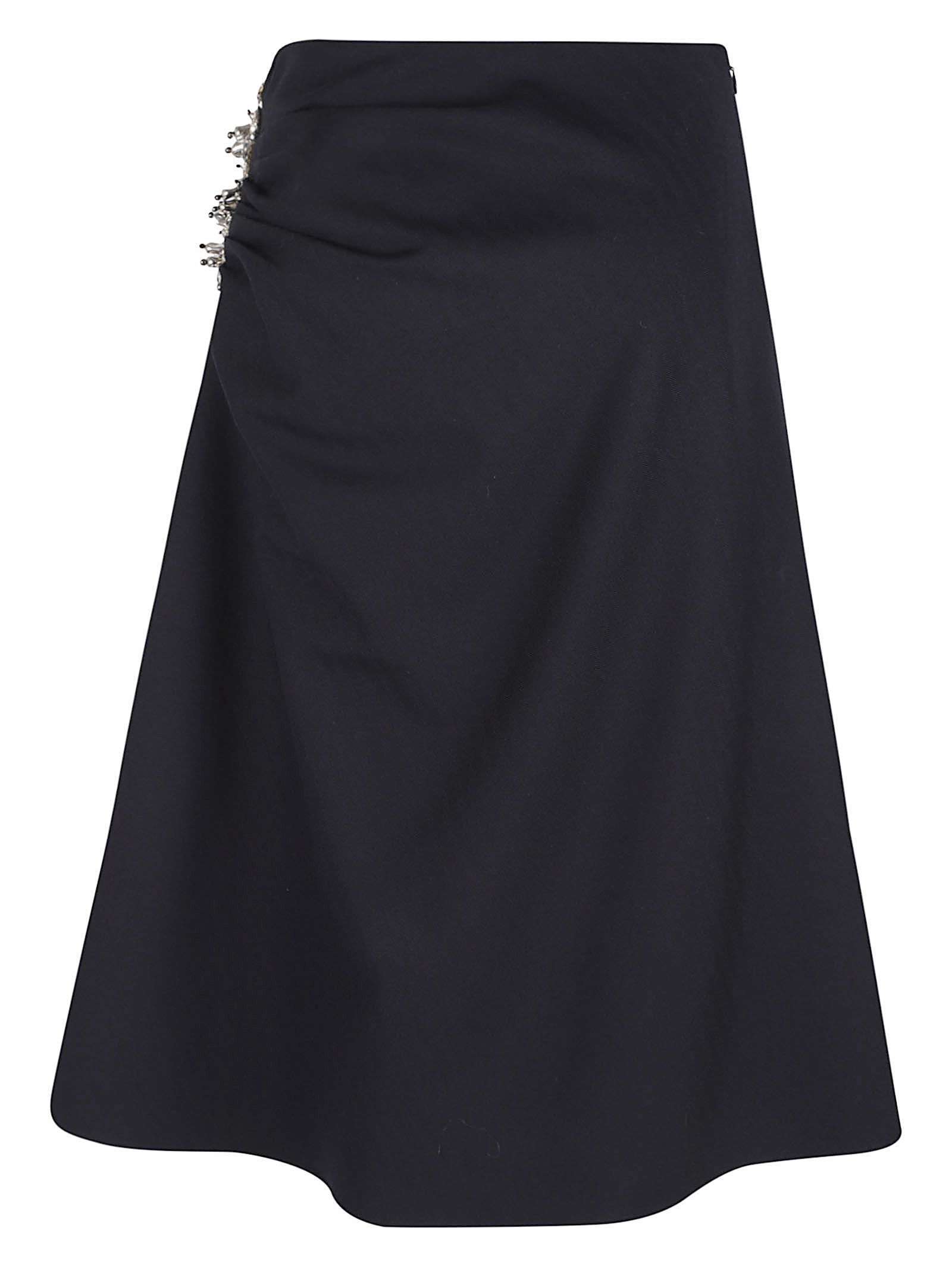 Gonna in lana con applicazione in strass a lato e drappeggio sul davanti