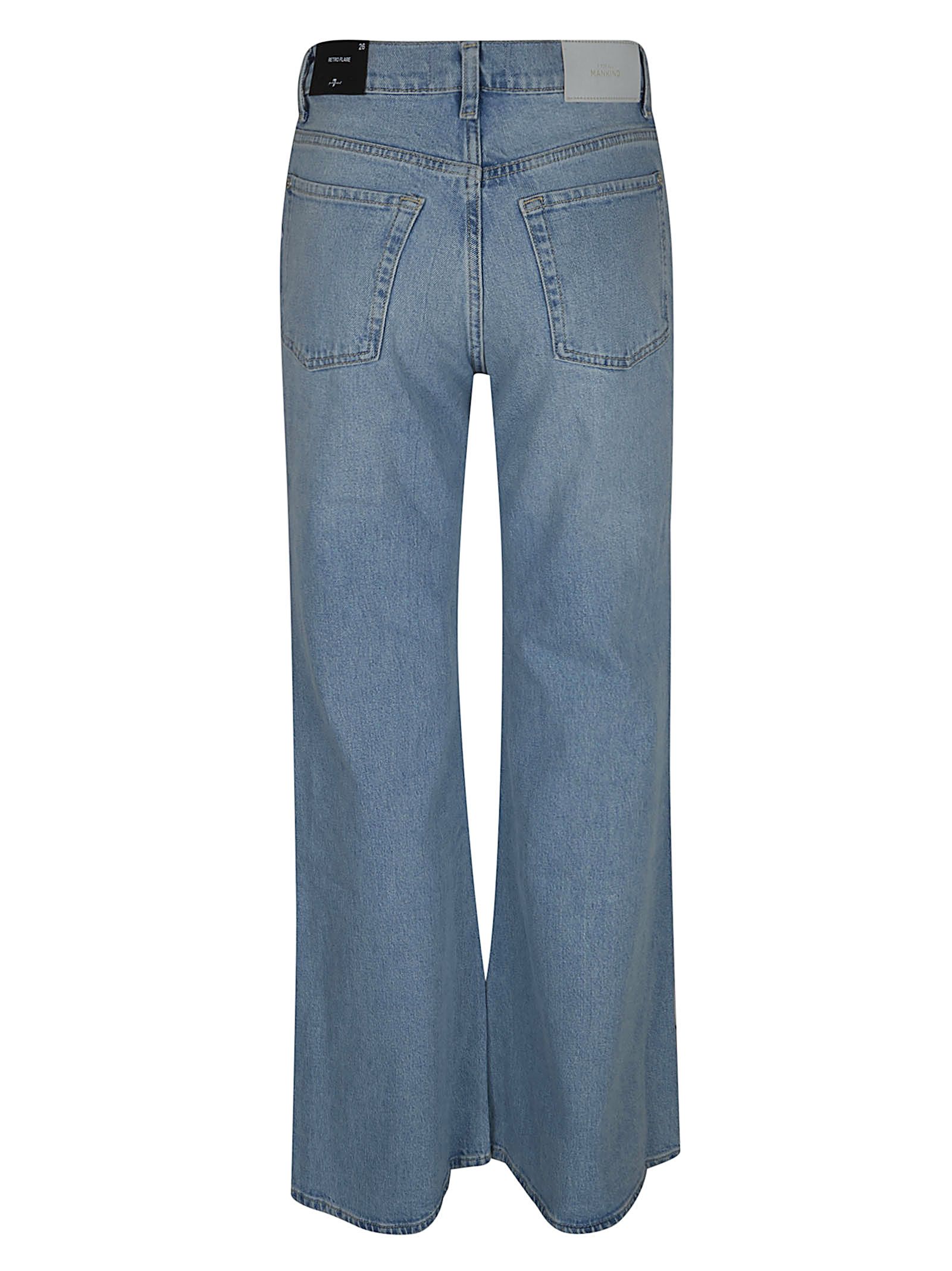 Jeans RETRO FLARE in denim di cotone leggermente elasticizzato di 7 FOR ALL MENKIND.Vita alta; chiusura con cerniera e bottone; cinque tasche. Vestibilità a zampa, vita alta che abbraccia fianchi e cosce per poi svasarsi per tutta la lunghezza.