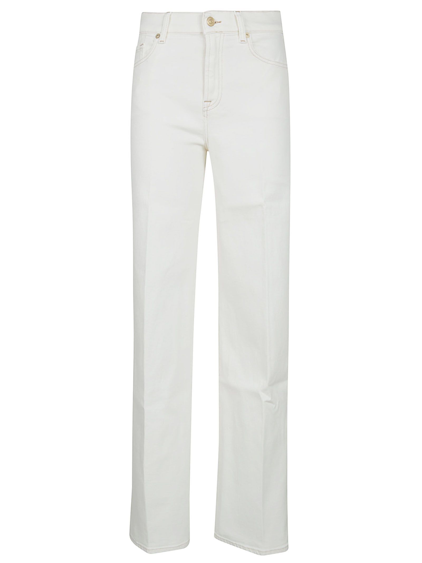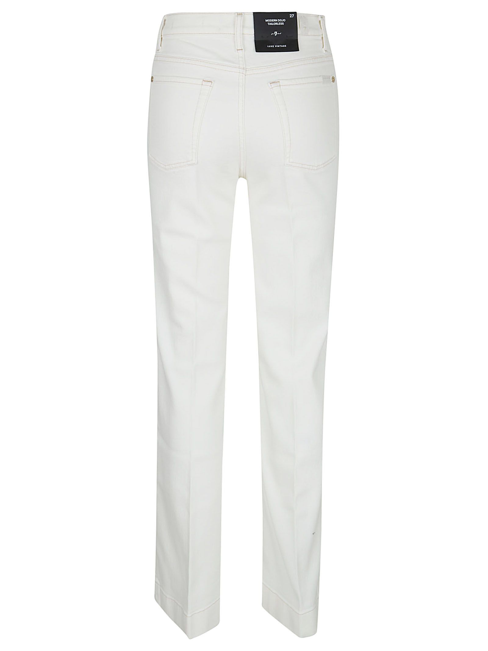 Jeans TAILORLESS MODERN DOJO in Luxe Vintage in denim di cotone elasticizzato di 7 FOR ALL MENKIND.Vita alta; chiusura con cerniera e bottone; cinque tasche. Caratterizzato da linguetta in vita e bandierina sulla tasca posteriore.Vestibilità a zampa, aderente su fianchi e cosce che si apre in un flare più ampio con interno gamba più corto.