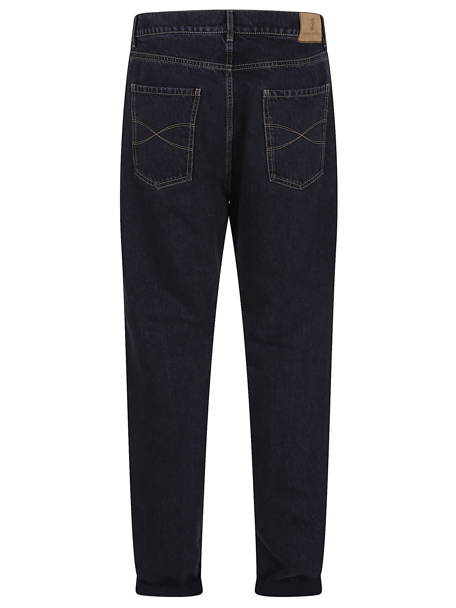 blu indaco chiusura a zip nascosta e bottone passanti per cintura cinque tasche classiche logo applicato