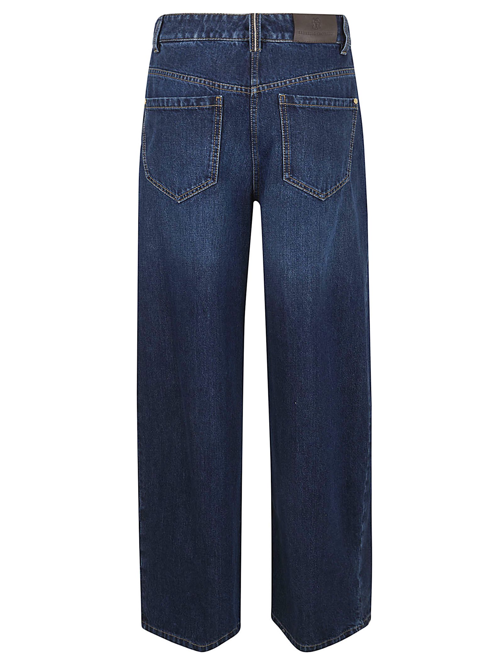 Pantalone Wide in denim Authentic di BRUNELLO CUCINELLI.Chiusura a zip con bottone; tasche frontali con taschino e tasche posteriori a toppa; passanti per cintura; design linee dritte, rilassate e ampie.Caratterizzato da tessuto con nuance sfumate e vissute e ricamo in prezioso monile che illumina il passante posteriore.