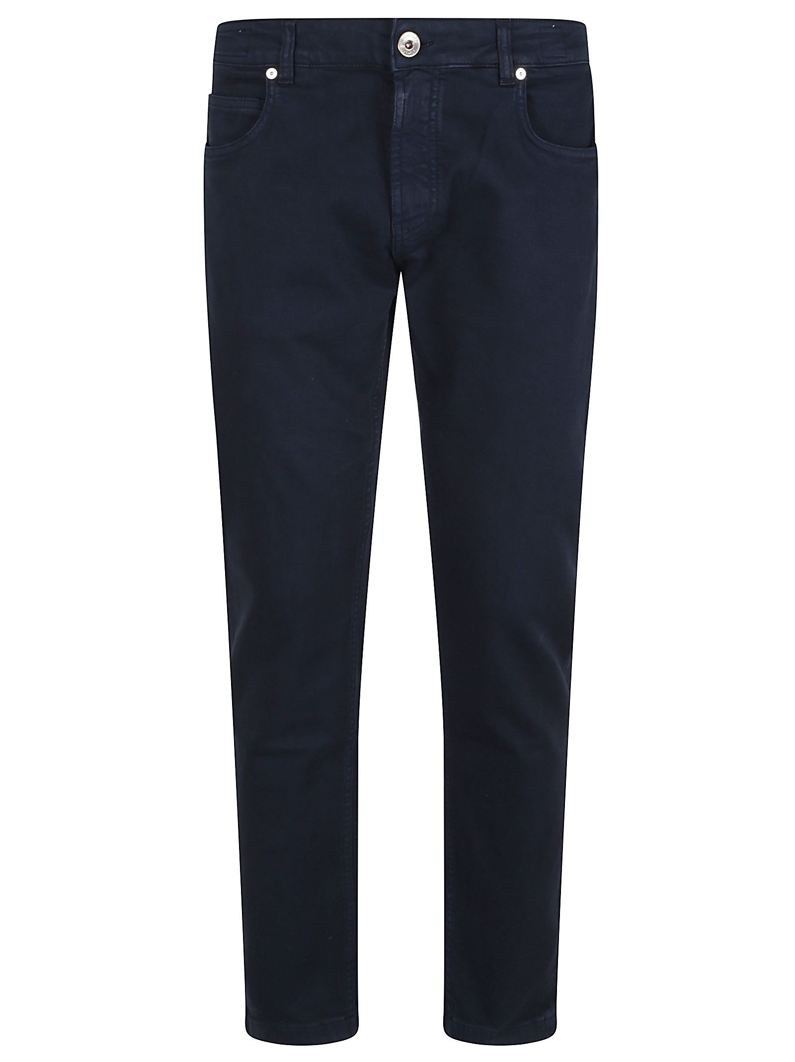 Pantalone in denim di cotone di ELEVENTY.Chiusura con zip e bottone; passanti per cintura; cinque tasche. Design vestibilità regolare. Caratterizzato da fiore Daisy, segno iconico del jeans Eleventy, impresso sui sacchi tasca.