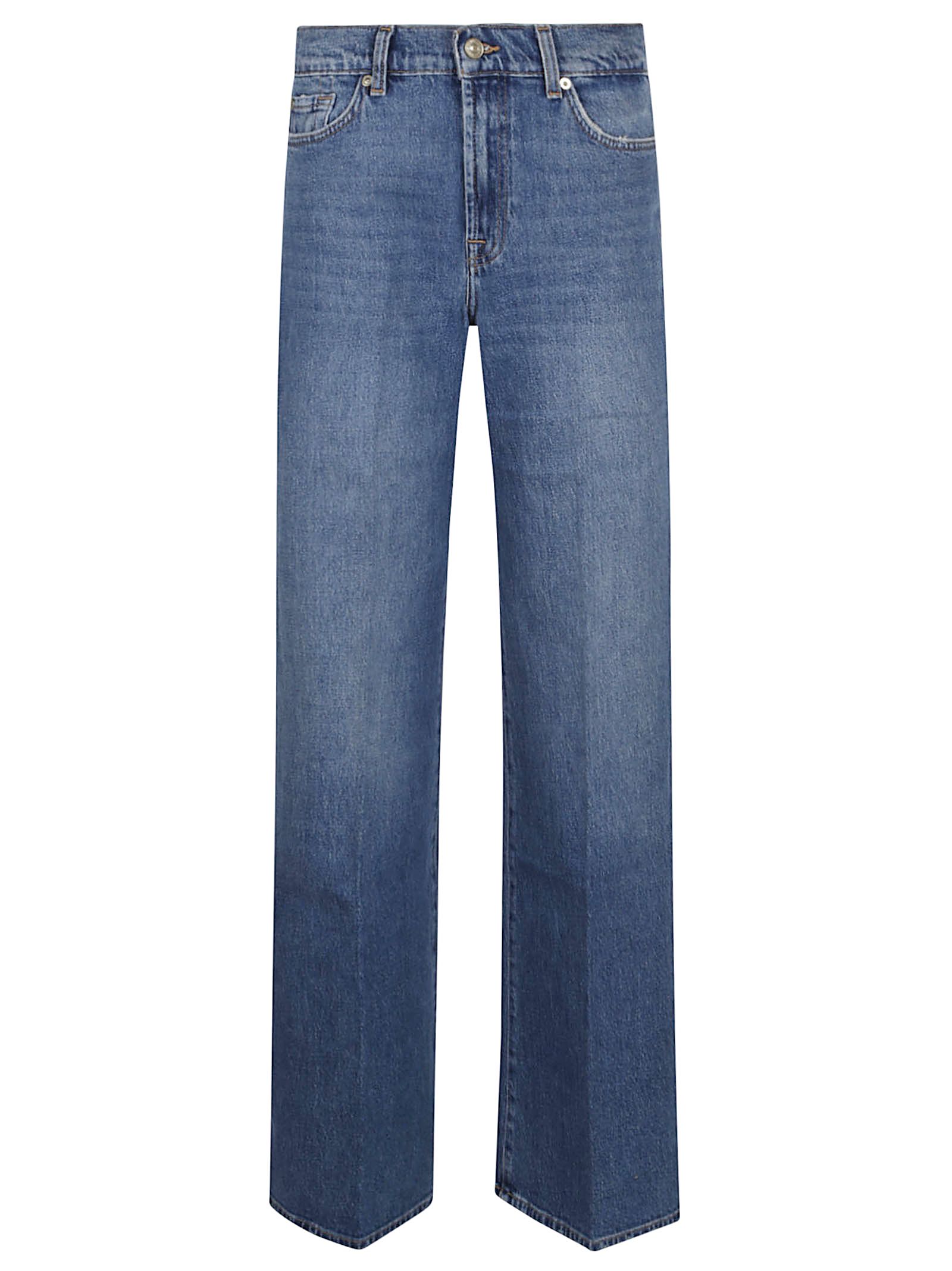 Jeans Marie in denim di 7 FOR ALL MENKIND. Vita alta; ampi sui fianchi e sulle gambe. Design vestibilità rilassata. Caratterizzato da risvolti vistosi.