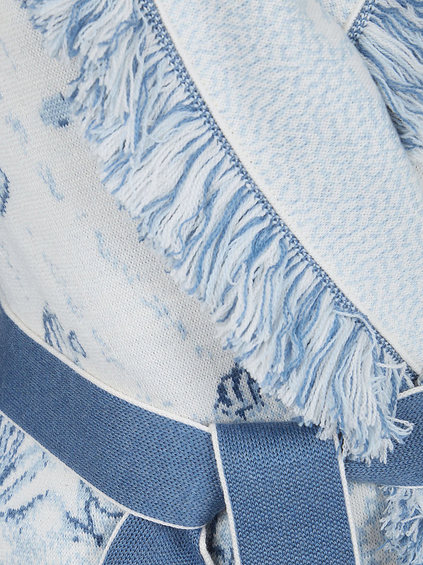 Cardigan Deep in the Ocean in morbida lana vergine di ALANUI.Bordi con frange abbinati e cintura bicolore.Caratterizzato da mondo incantato delle profondità marine, con barriere coralline e creature marine in maglia jacquard doppia ad alta definizione.
