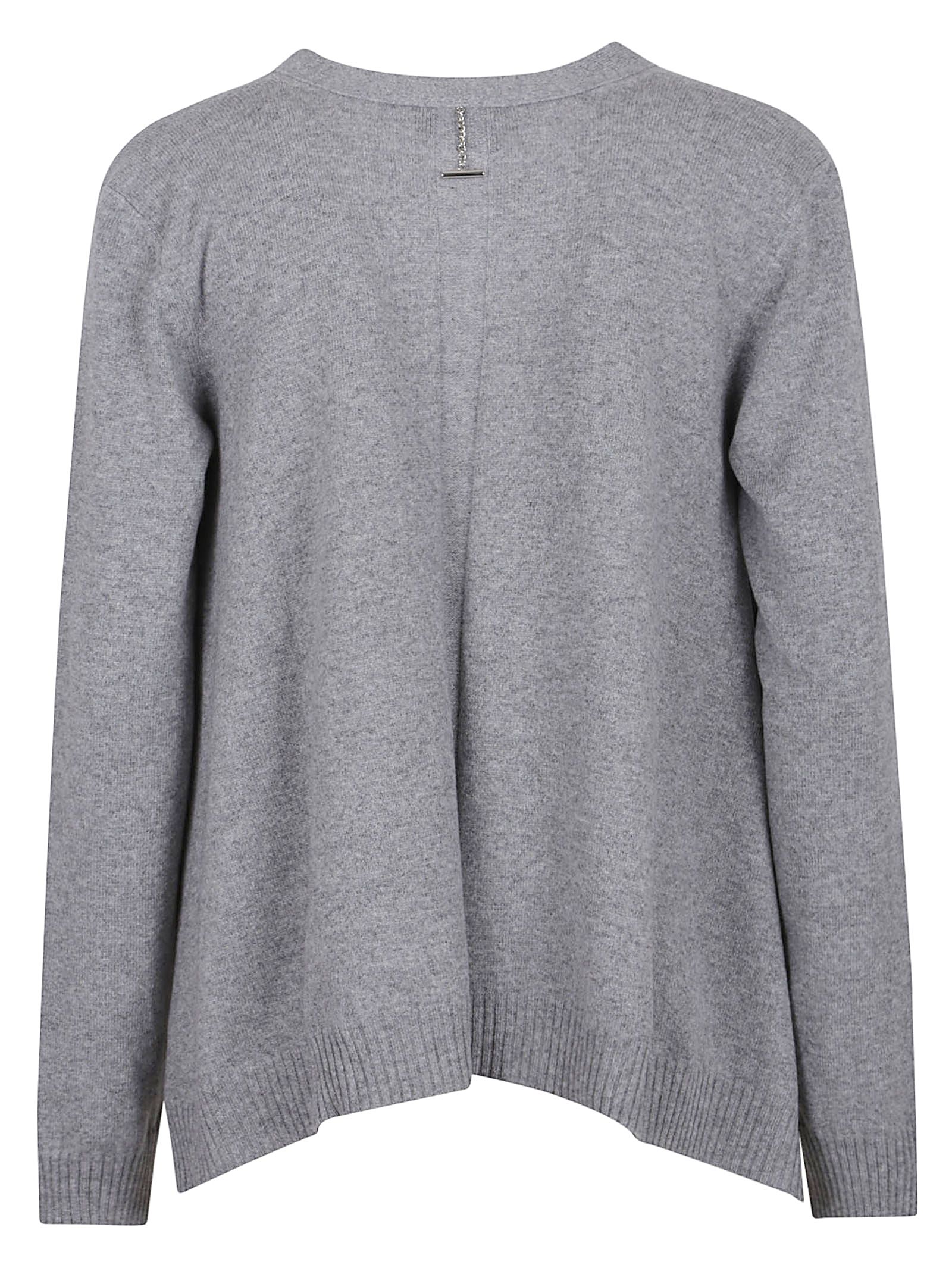 GRIGIO chiaro scollatura a V chiusura con bottoni maniche lunghe orlo asimmetrico orlo a coste