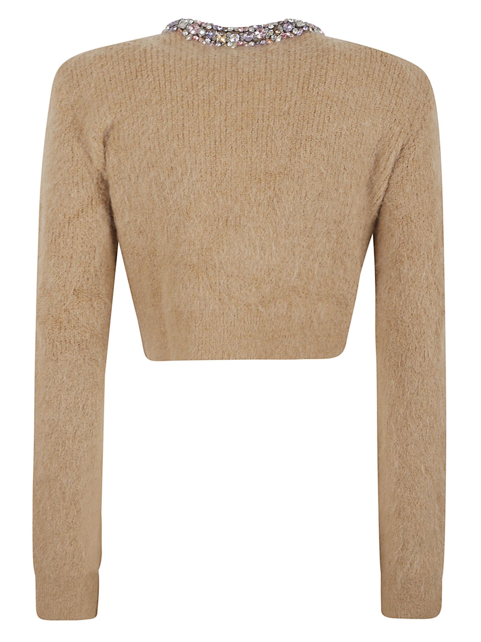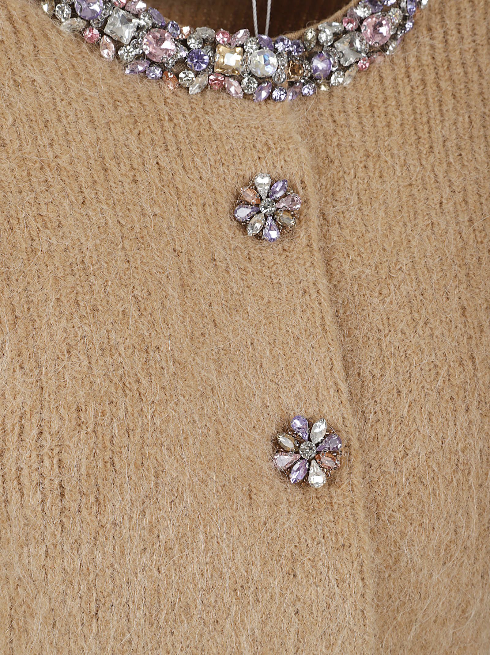 BROWN EMBELLISHED TRIM CARDIGAN SELF-PORTRAIT