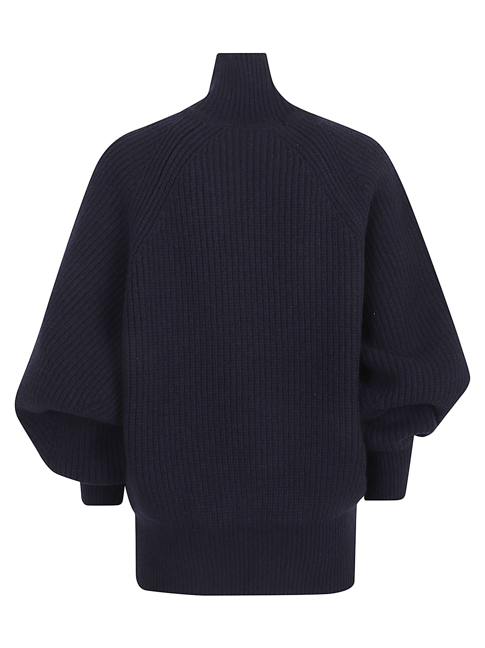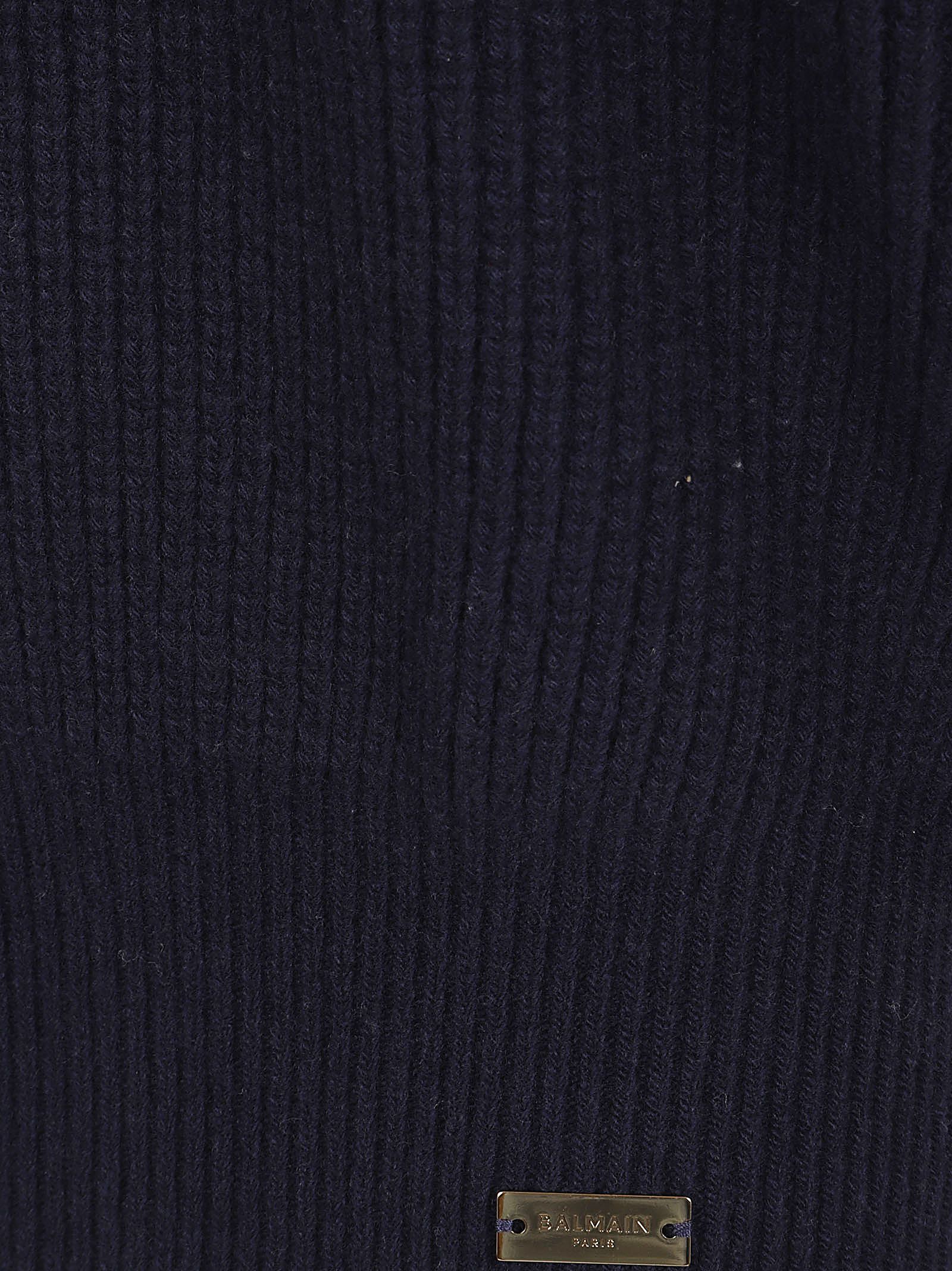 Pullover in pura lana di BALMAIN.Collo alto; maniche lunghe a pipistrello; motivo a coste; design vestibilità oversize.
