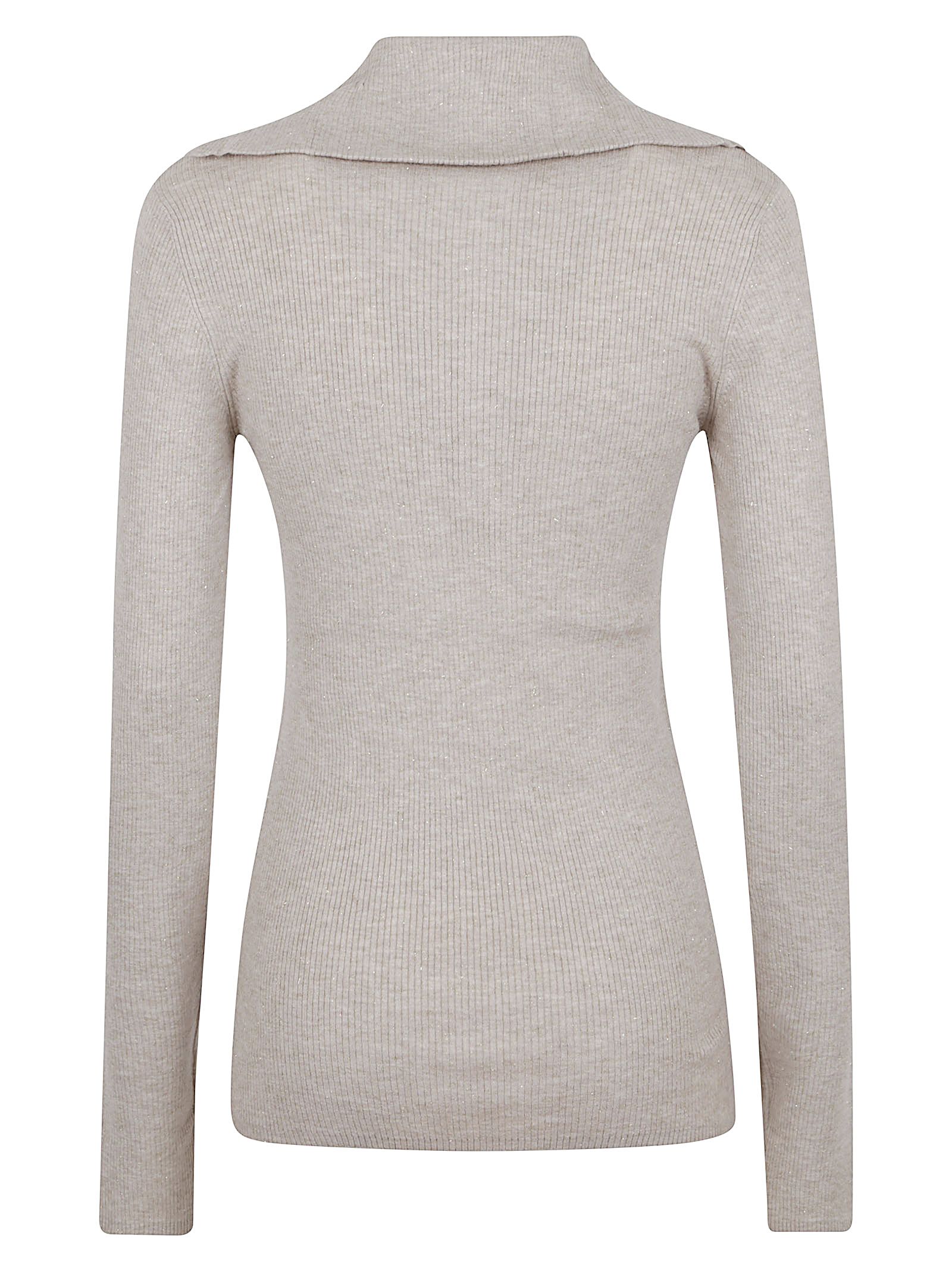Polo in maglia leggera misto lana di BRUNELLO CUCINELLI.Collo alto; chiusura con bottoni in corno; maniche lunghe; maglia a coste; design vestibilità regolare, che segue le forme del corpo.