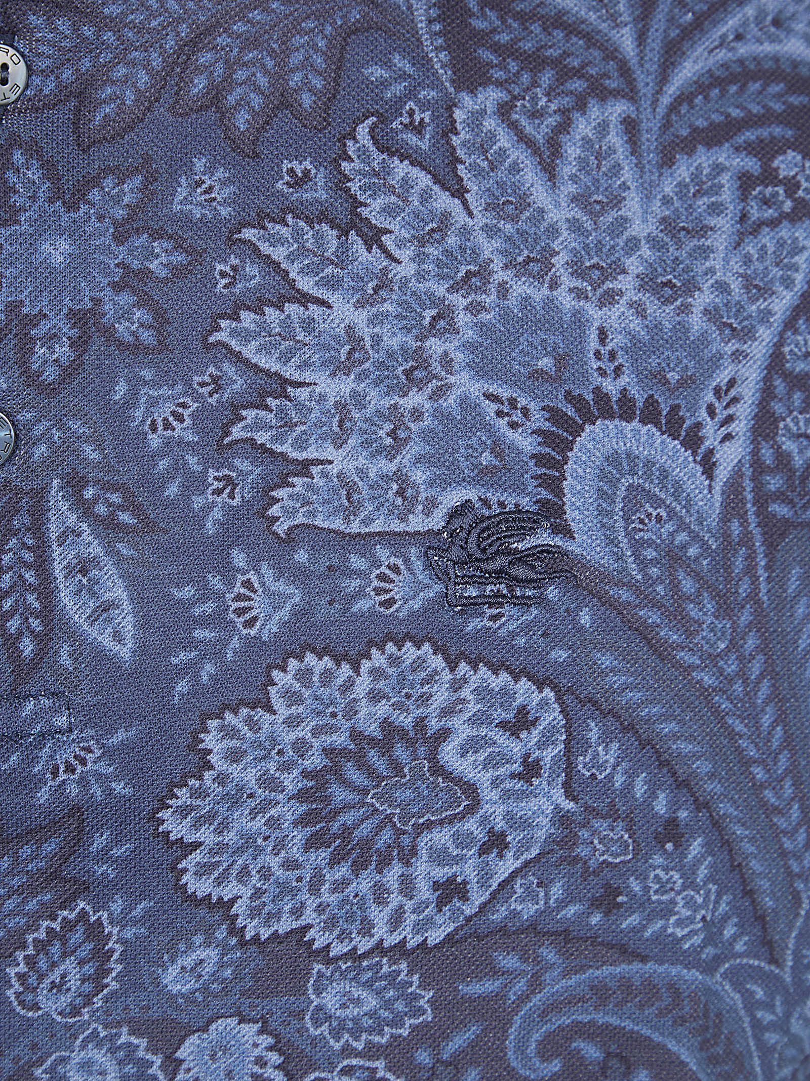 Polo in in piquet di puro cotone di ETRO.Maniche corte; colletto a punta con bottoni logati; design vestibilità regolare. Caratterizzata da motivo Paisley all over con dettagli d`ispirazione foliage, colletto e inserti a fondo manica tinta unita con lavorazione a costine e piccolo ricamo Pegaso in corrispondenza del petto.