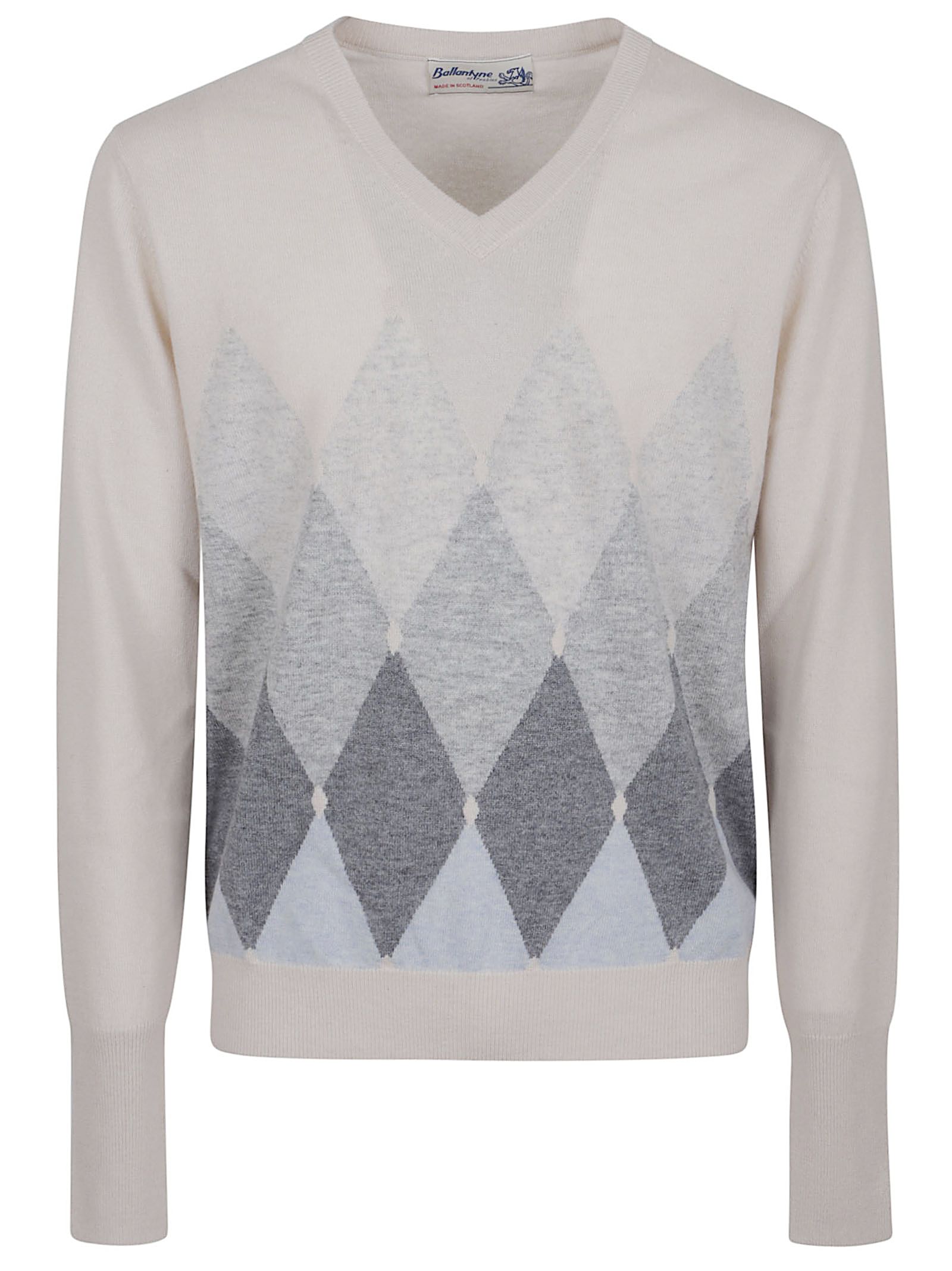 Maglia in puro cashmere BY BALLANTYNE.Manica lunga; scollo a V; scollo e fondi a coste.Caratterizzato da Rombo Classico.