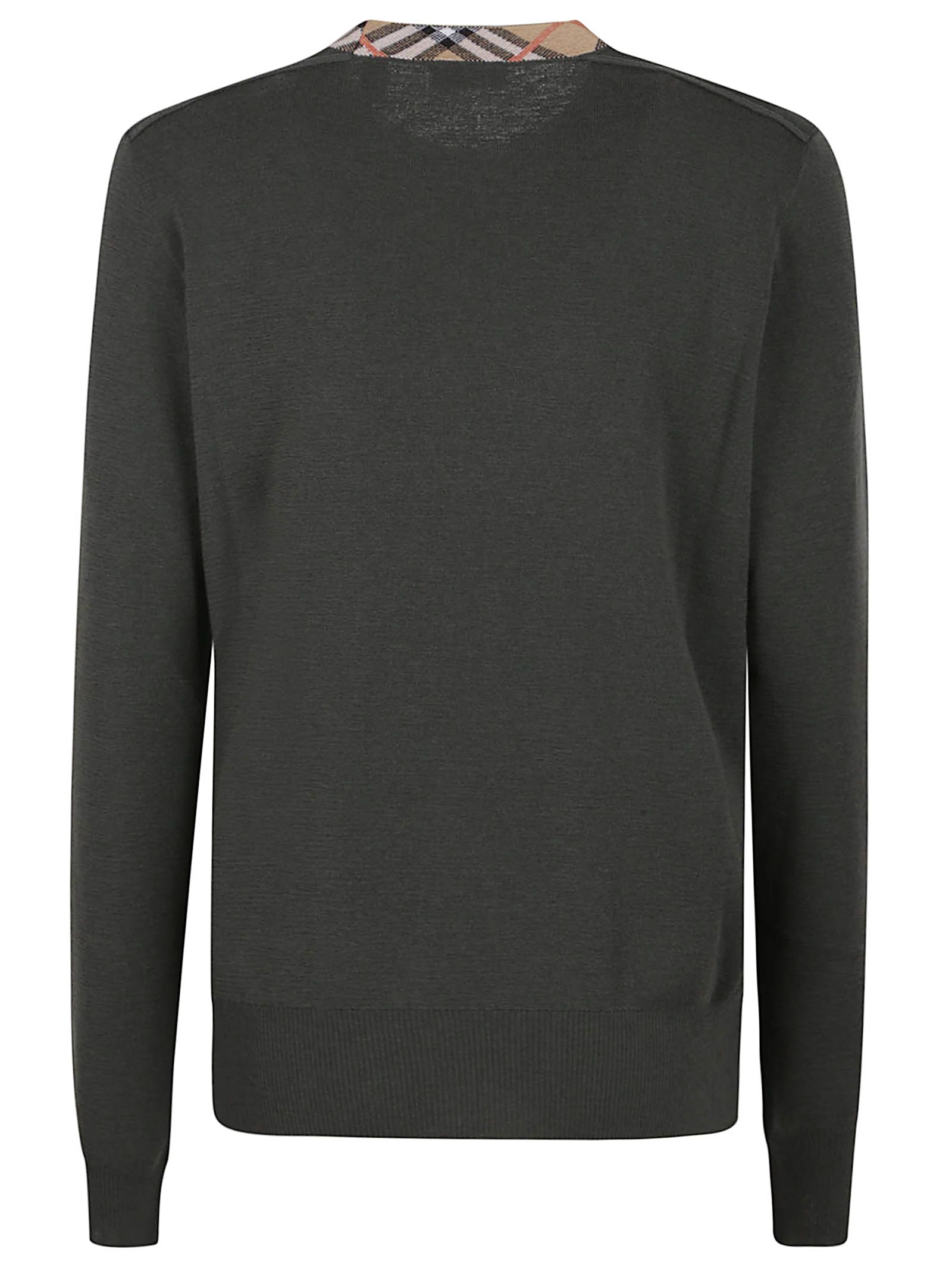 caffè marrone maglia fine collo rotondo maniche lunghe bordo e polsini a righe