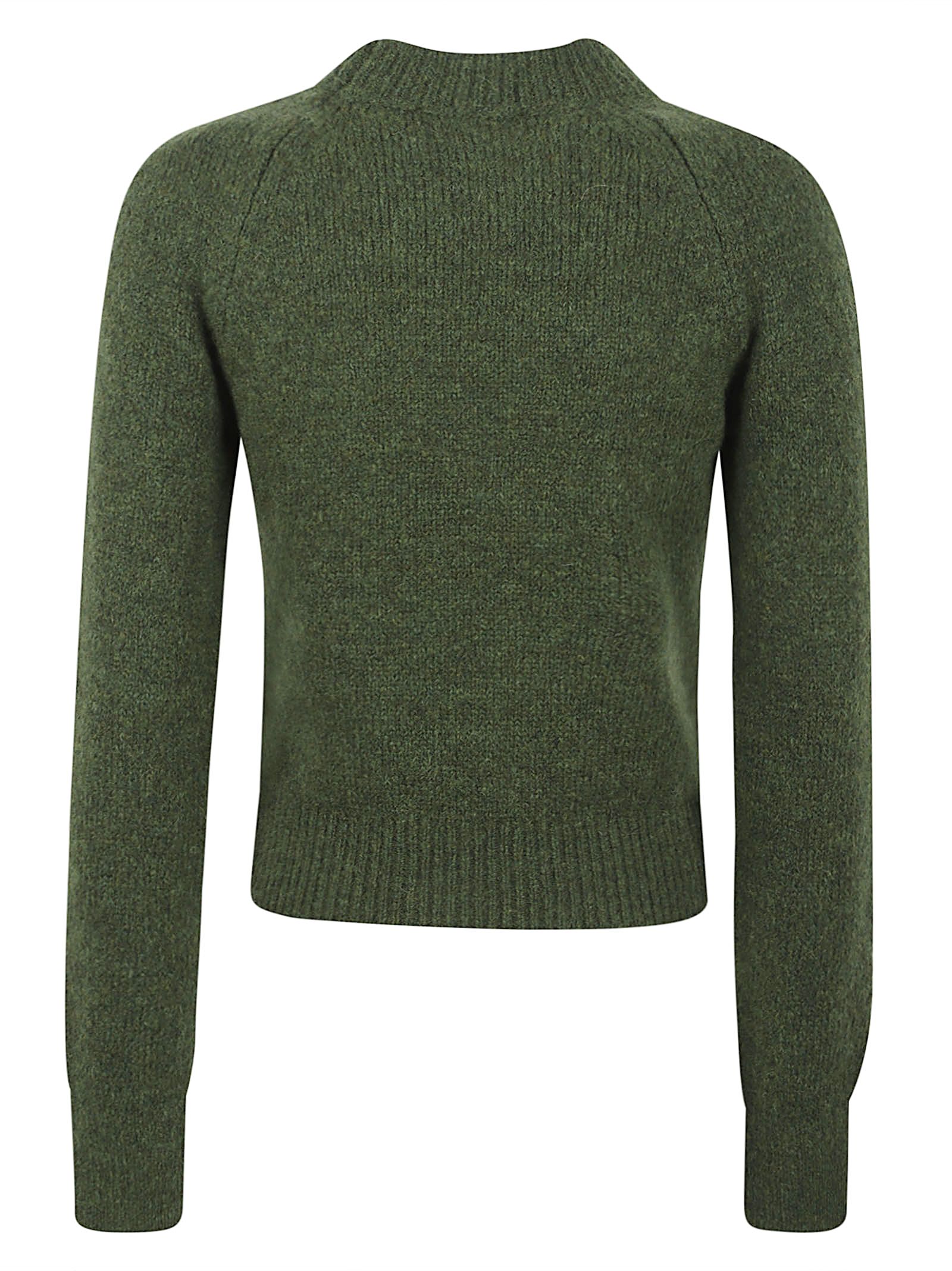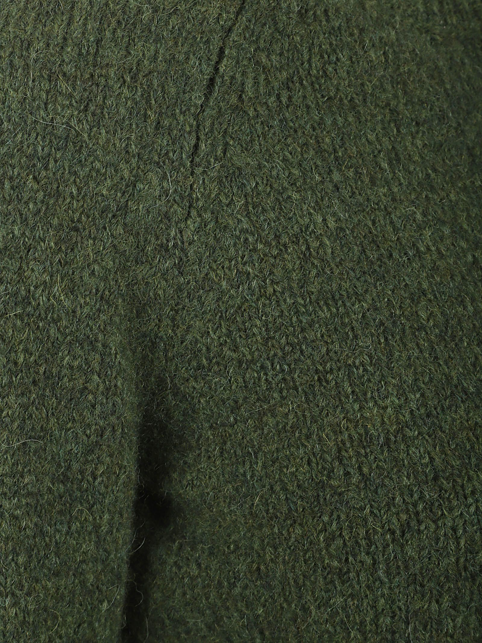 maglione a girocollo a maniche lunghe in maglia verde scuro con texture, orlo a coste e polsini a coste