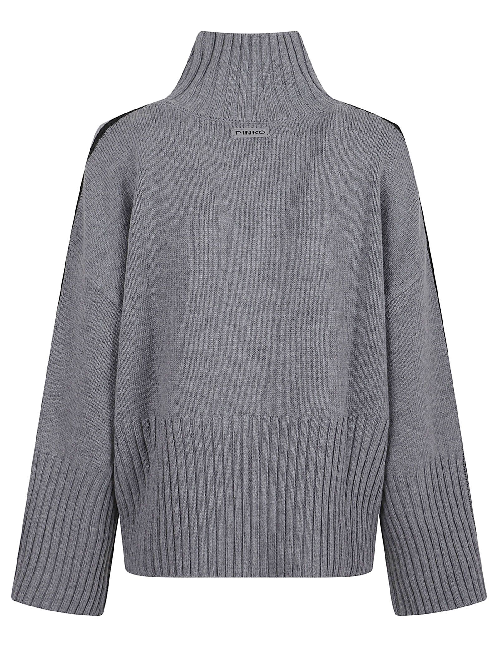 Maglione realizzato in pregiata lana merino di PINKO.Girocollo; design vestibilità rilassata, orlo e polsini a coste.Caratterizzato da filato a contrasto sulle maniche che riprende il colore del Logo lettering PINKO sul retro del capo.