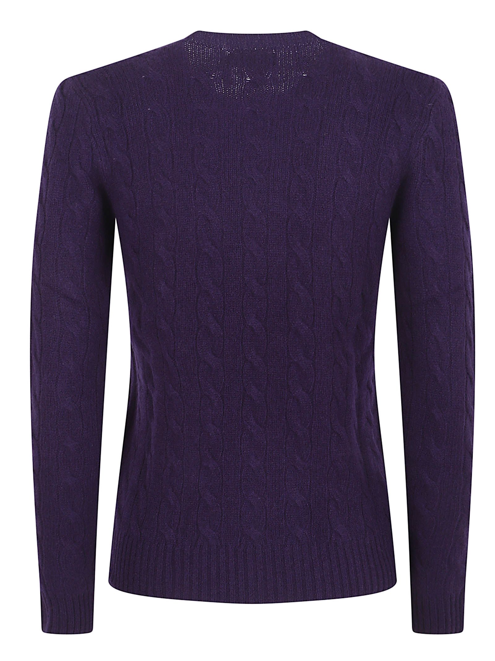 ` maglia girocollo melanzanamaglia a trecce collo rotondo maniche lunghe logo ricamato`