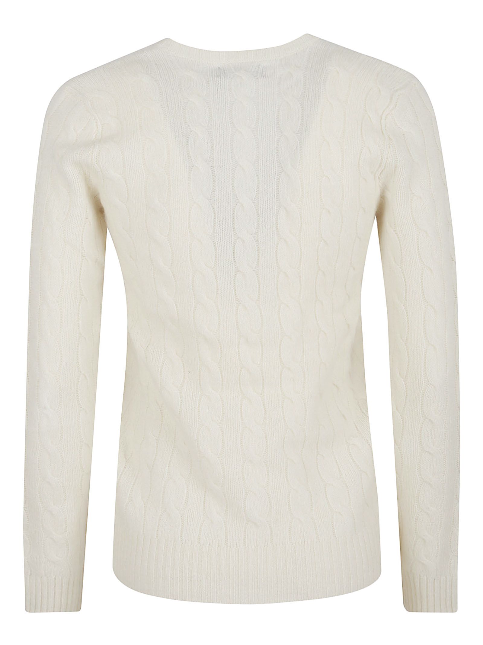 Maglione in lana italiana e cashmere lavorazione a trecce di POLO RALPH LAUREN.Scollo a V; maniche lunghe con polsini a coste come orlo. Caratterizzato da pony ricamato sul lato sinistro del torace.