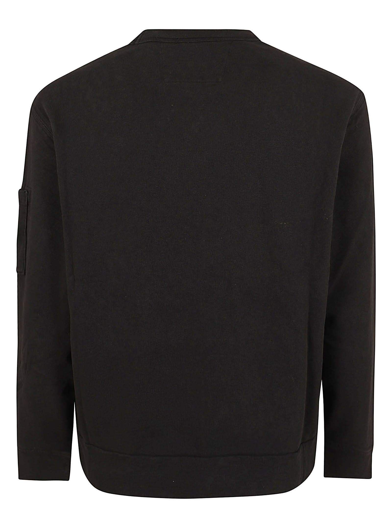 Felpa di C.P. Company, caratterizzato dall`iconico dettaglio a "lente" (Lens) sulla manica sinistra. Si tratta di una felpa girocollo in cotone nero, un capo versatile del brand italiano noto per la sua ricerca sui materiali e il design funzionale