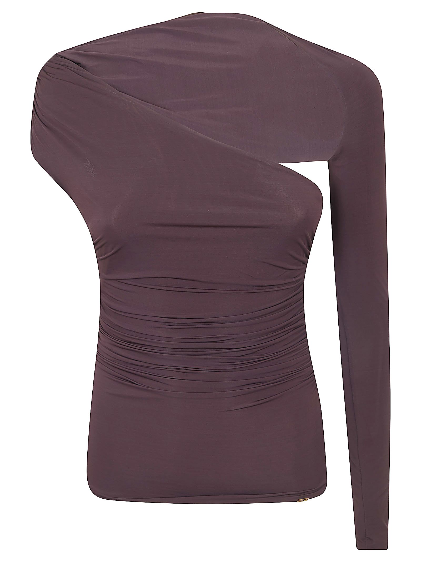 Top in jersey con fodera in maglia di ELISABETTA FRANCHI.Design monospalla; manica lunga; vestibilità aderente.Caratterizzato da dettaglio in metallo con Logo.
