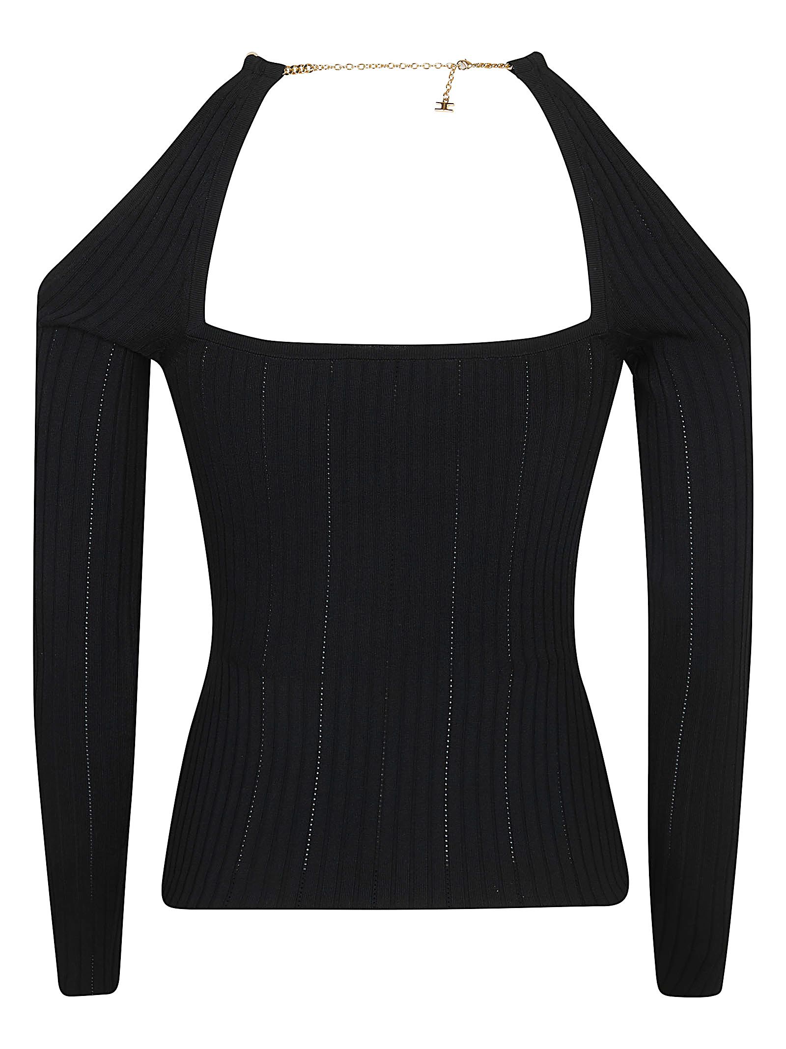 Top in maglia a costine traforate di ELISABETTA FRANCHI.Maniche lunghe.Caratterizzata da design spalle scoperte e dettaglio gioiello in metallo dorato.