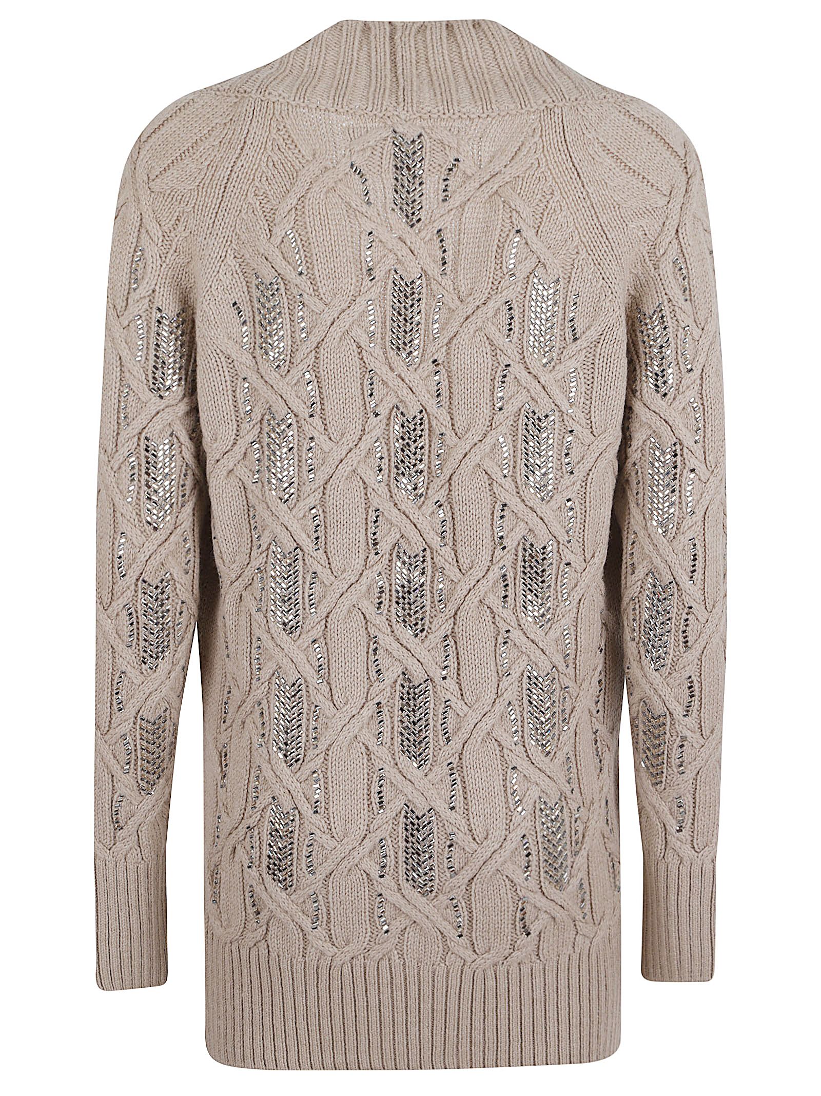 Cardigan in misto lana di ERMANNO SCERVINO.Maniche lunghe; scollo ampio; design vestibilità morbida. Caratterizzato da maglia intrecciata e profilo a costine, impreziosito da cristalli.