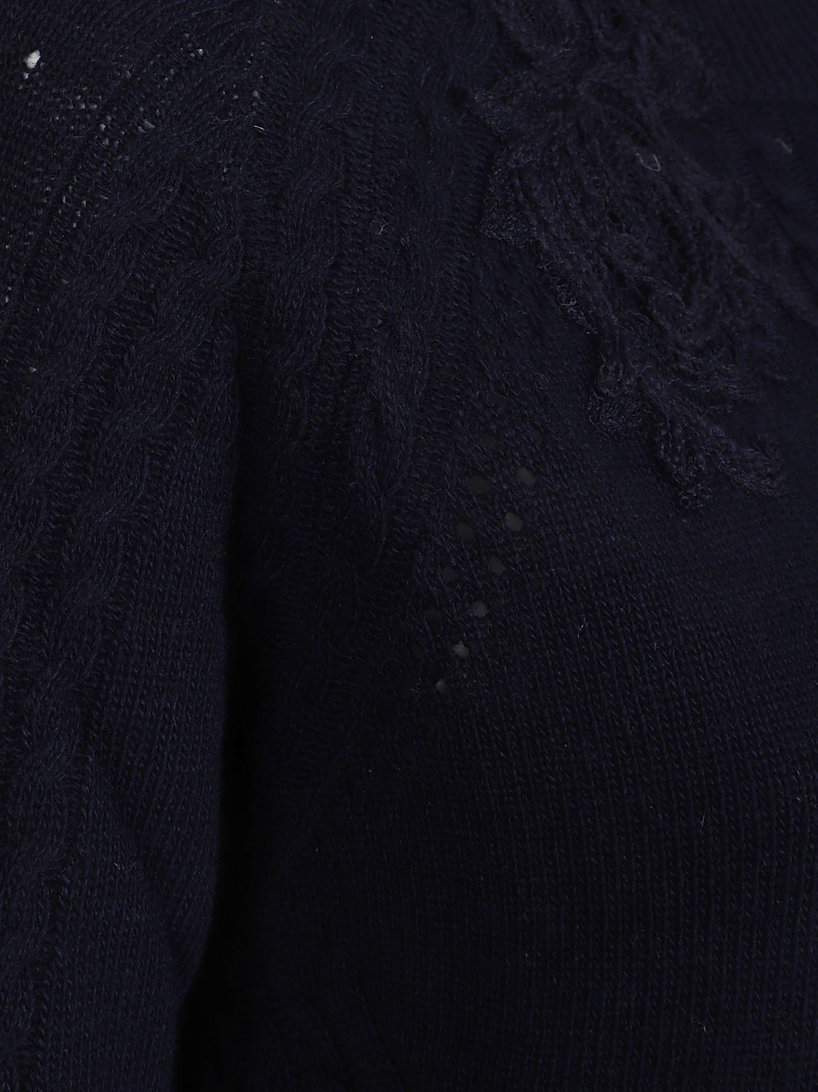 Maglione in misto lana di ERMANNO SCERVINO.Collo alto; maniche lunghe; profili con elastico a costine.Caratterizzata da maglia a costine alternata ad intrecci e collo impreziosito da pizzo floreale tono su tono.