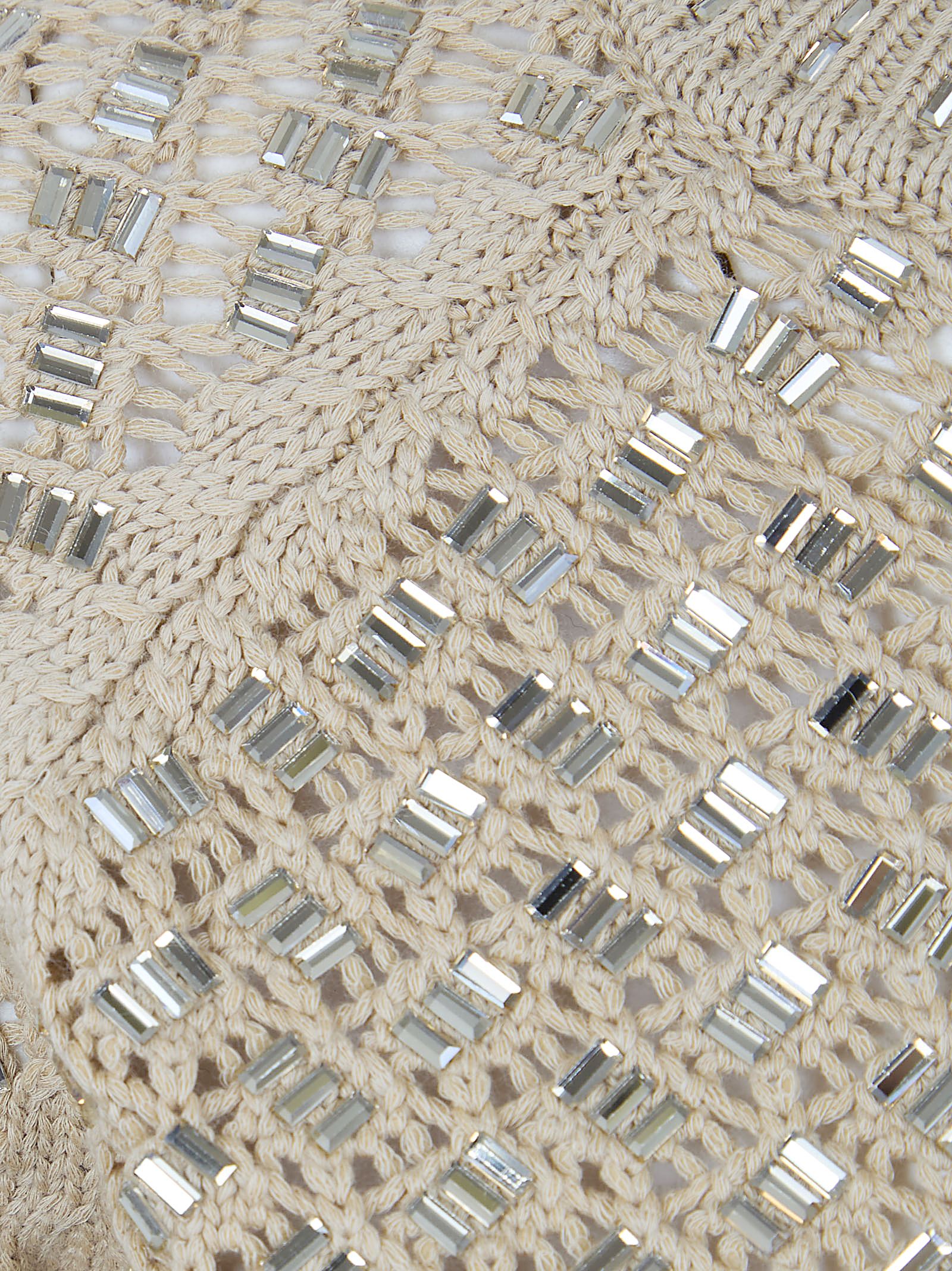 Top in maglia di cotone di ERMANNO SCERVINO.Mezza manica; girocollo; girocollo, maniche e fondo con elastico a costine; design vestibilità aderente che segue le forme del corpo.Impreziosito da cristalli applicati a mano.