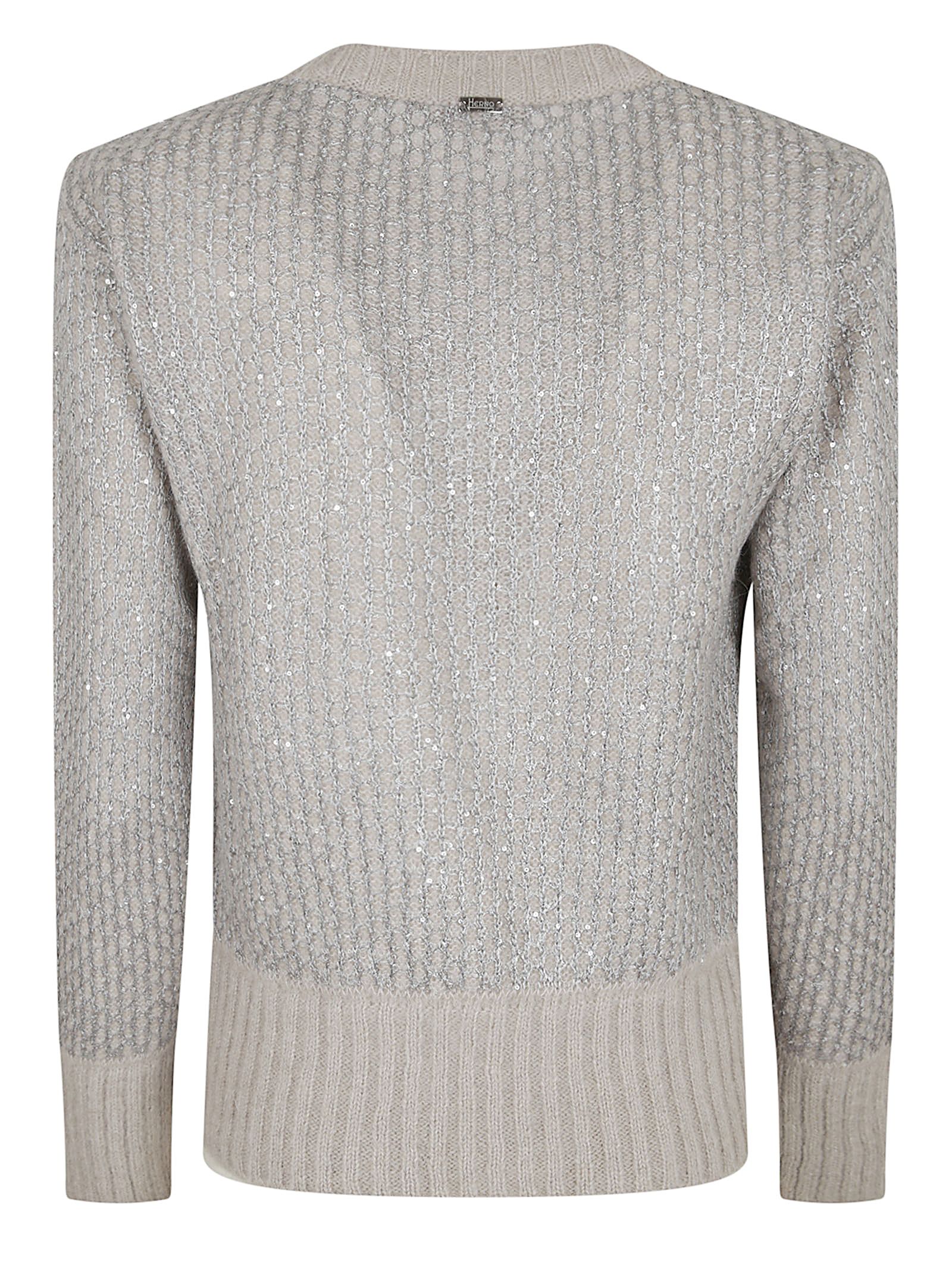 Maglione in un pregiato blend di lana, alpaca e paillettes lavorazione punto rasato di HERNO.Girocollo; maniche lunghe; bordi rifiniti a coste; design vestibilità regolare.Caratterizzato da Logo Herno in metallo sul retro e effetto double paillettes.