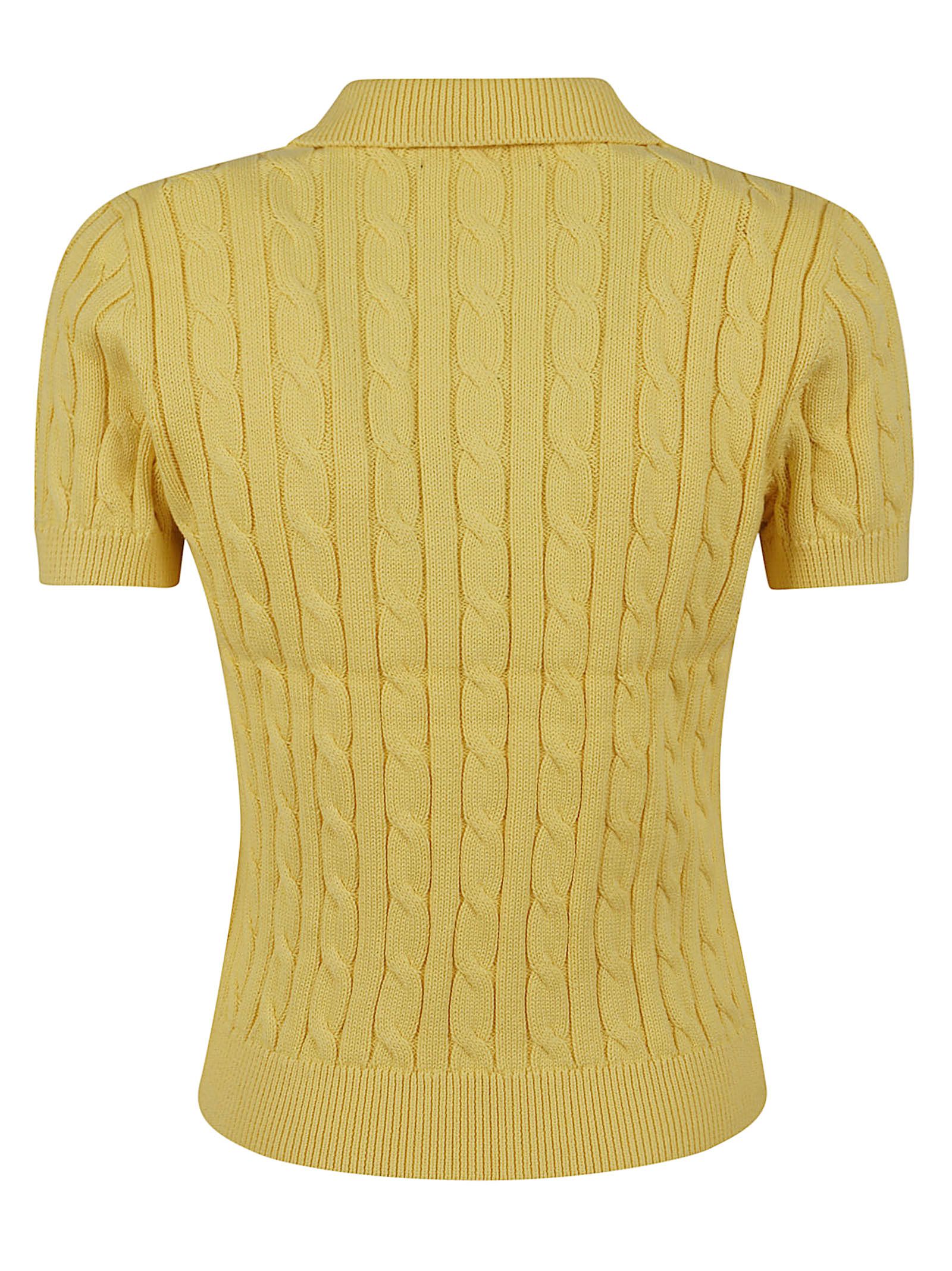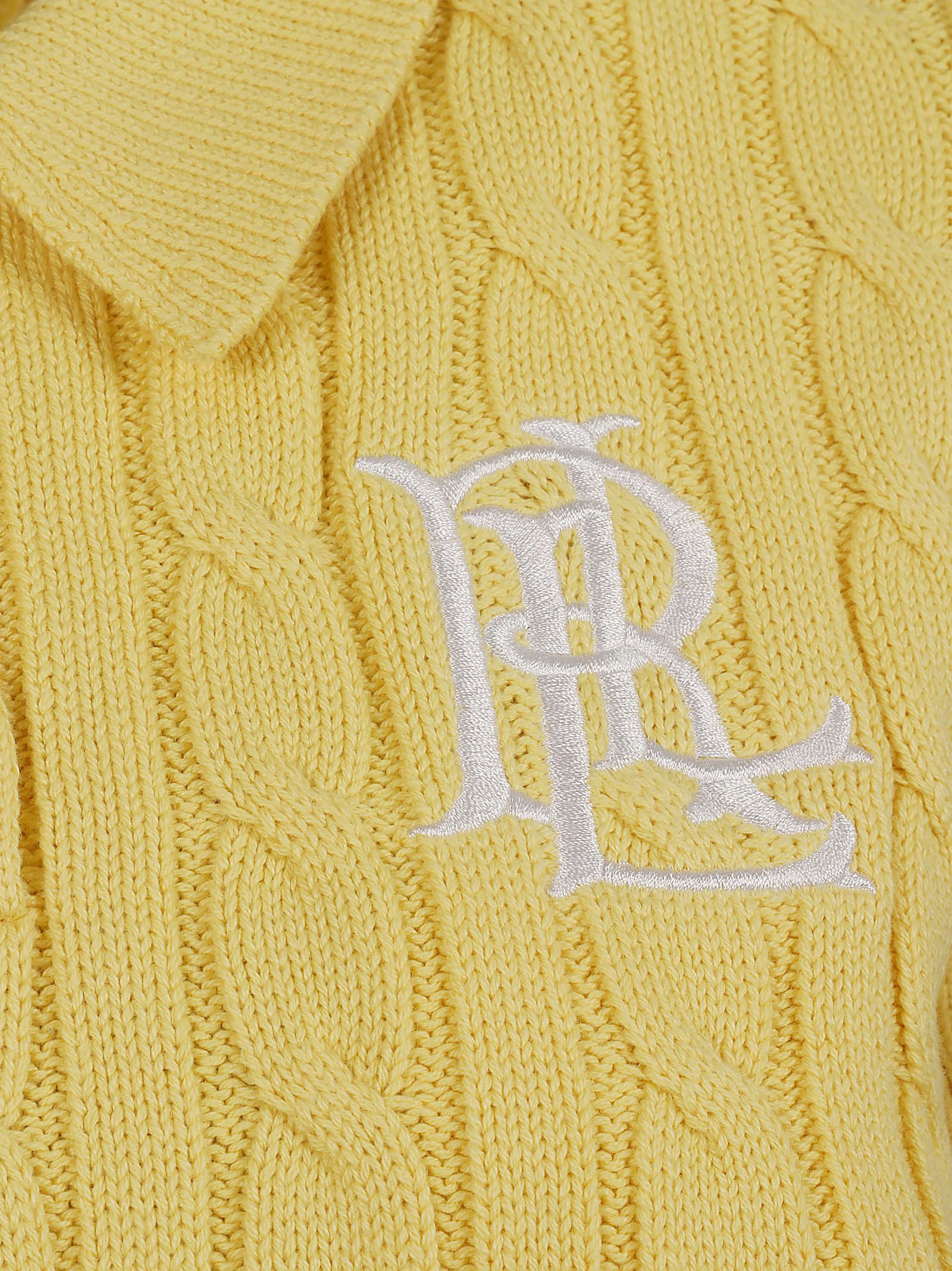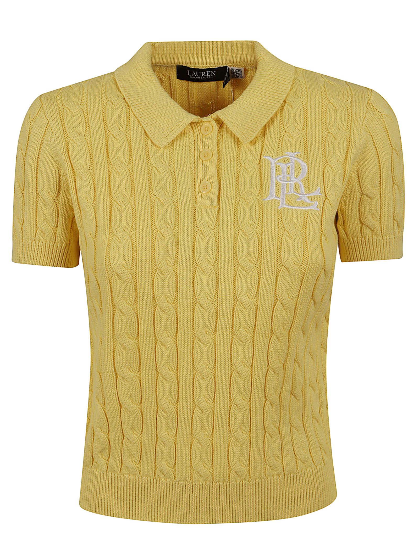 Maglia polo in cotone a trecce firmata Lauren Ralph Lauren, caratterizzata dal colore "Lemon Sorbet".