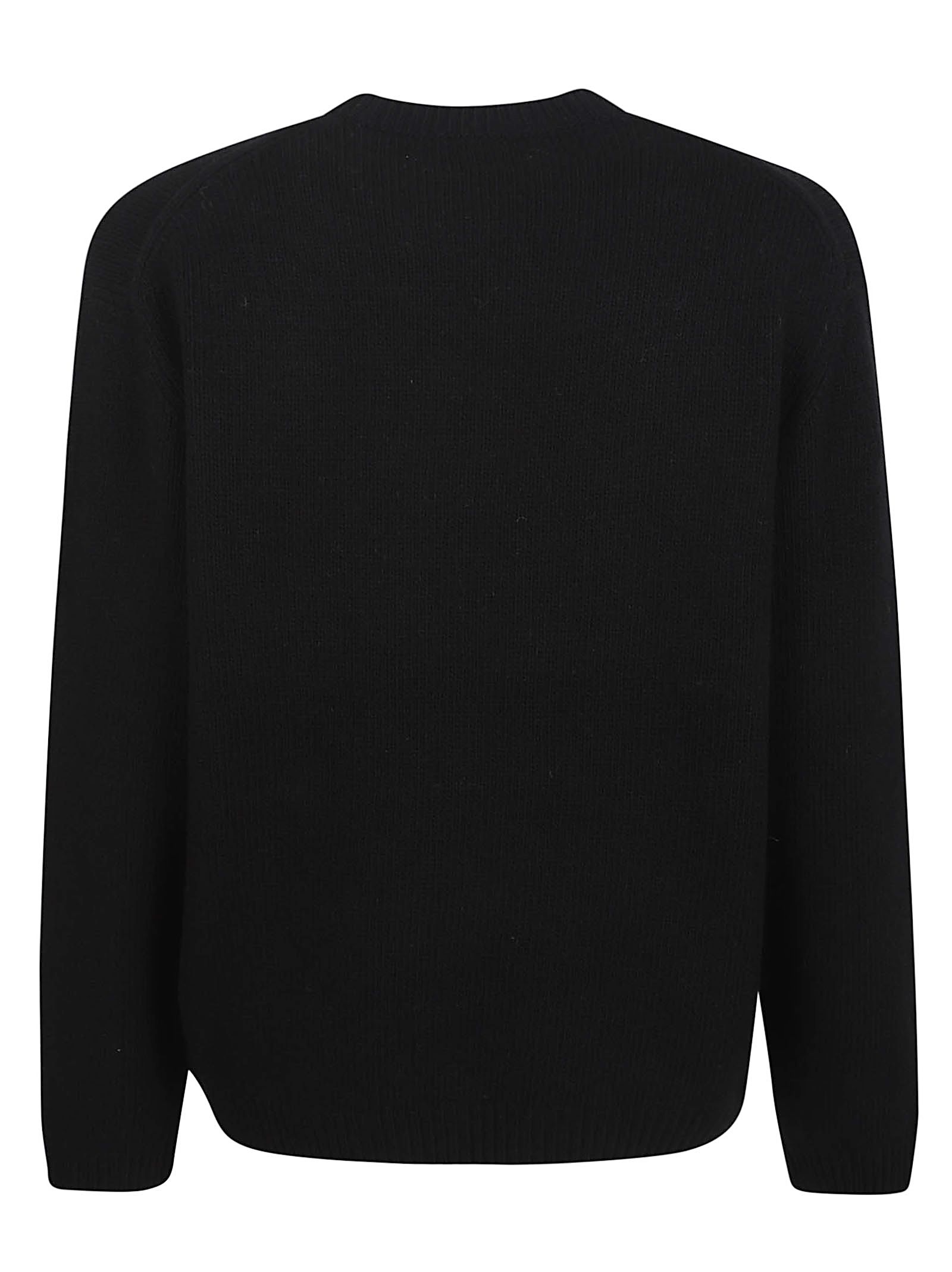 "Motivo a intarsio di volpe in maglia metallica e nero, girocollo, maniche lunghe e orlo a costine."