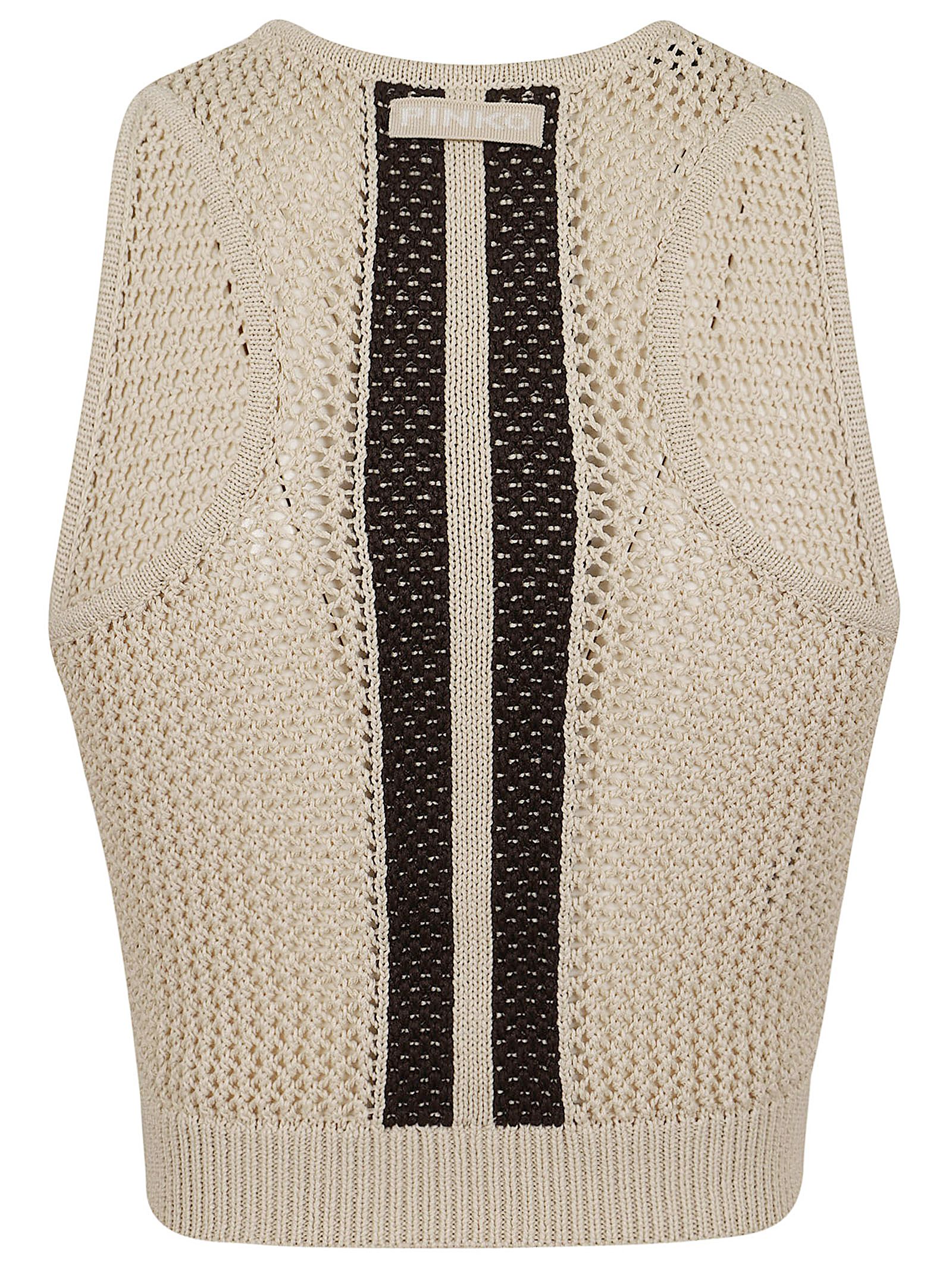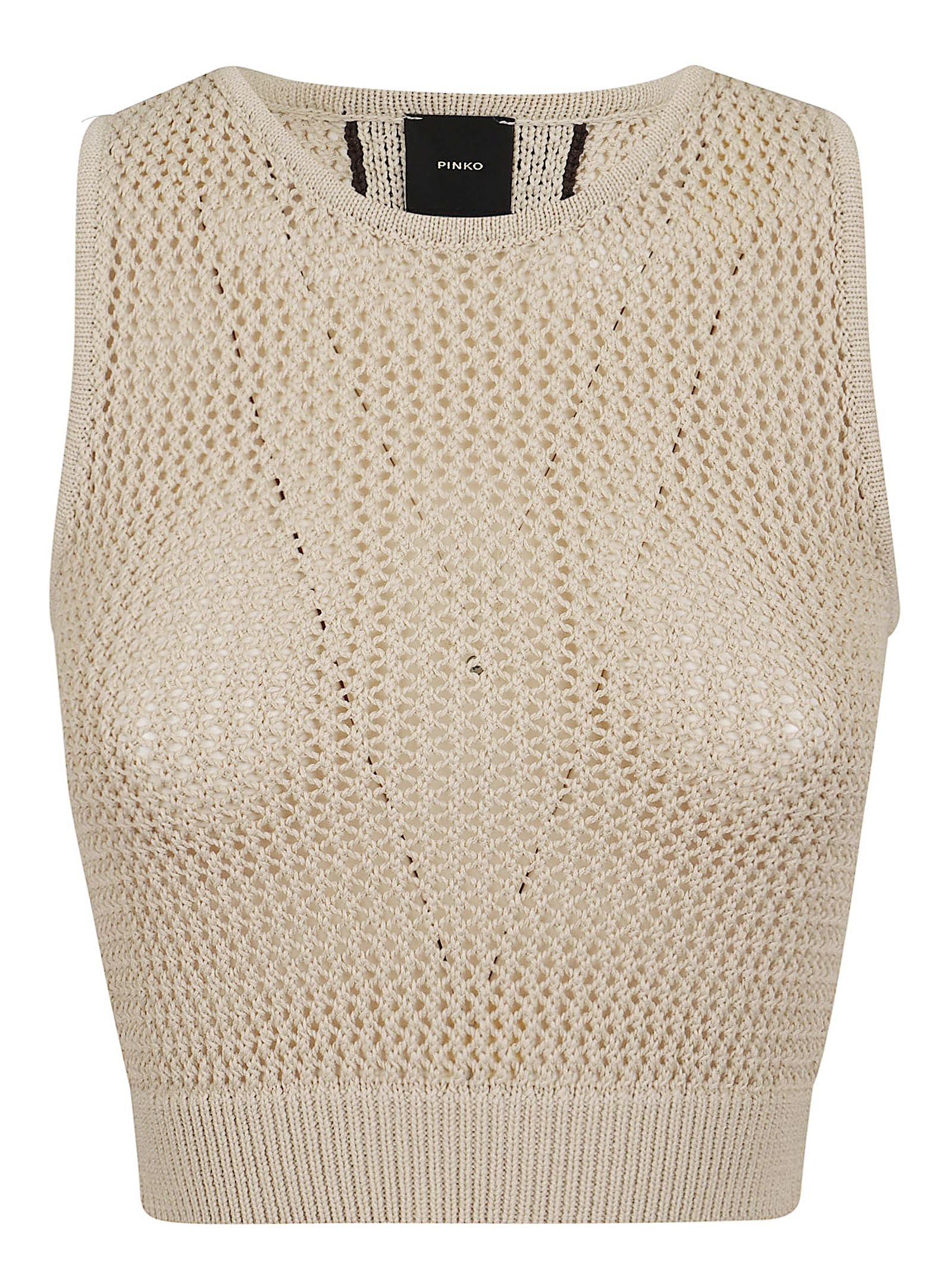Top by Pinko caratterizzato da una lavorazione in maglia a rete (crochet), scollo rotondo, senza maniche.Realizzato in misto cotone per garantire freschezza e comfort