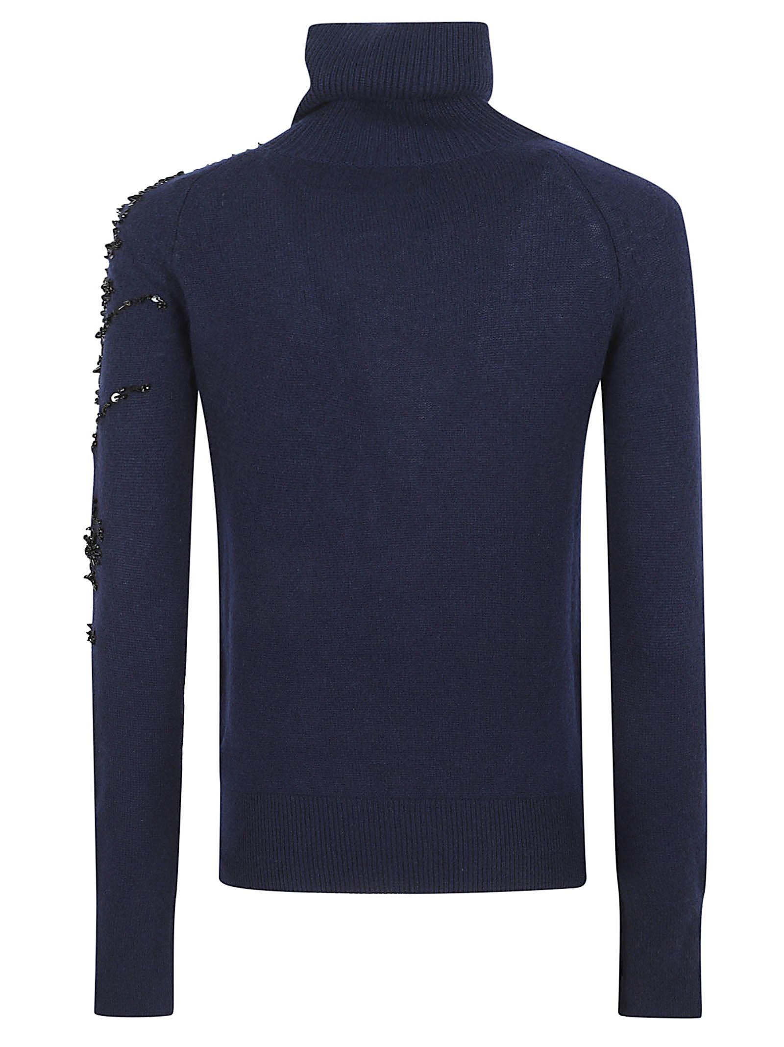 Maglione in puro cashmere di ERMANNO SCERVINO.Collo alto; manica lunga; fondo e i polsini presentano la costinatura stretta.Impreziosito da iris ricamato a mano, simbolo nobile e senza tempo della città di Firenze.