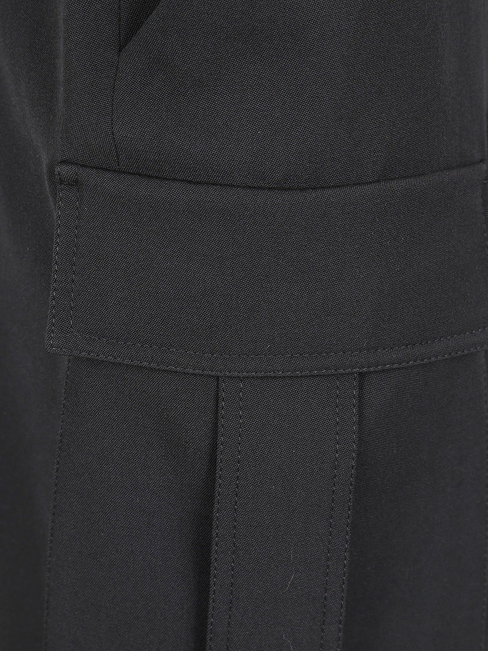 Pantaloni cargo in lana grain de poudre di BALMAIN.Chiusura sotto la patta con zip, bottone e gancio; passanti per cintura; design vestibilità dritta. Caratterizzati da tasche a soffietto con patta a pressione sui lati.