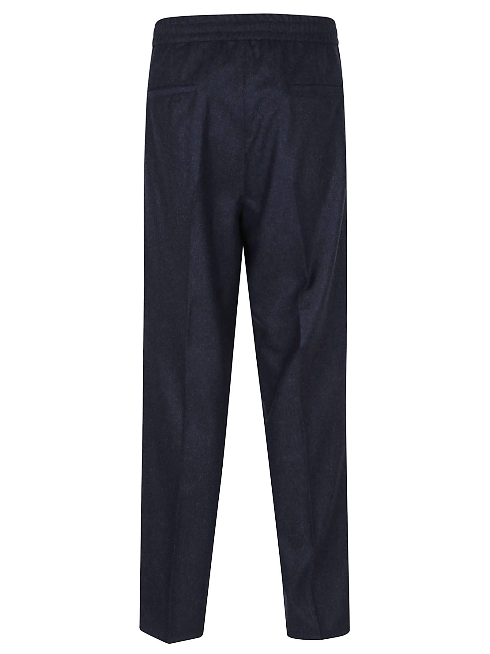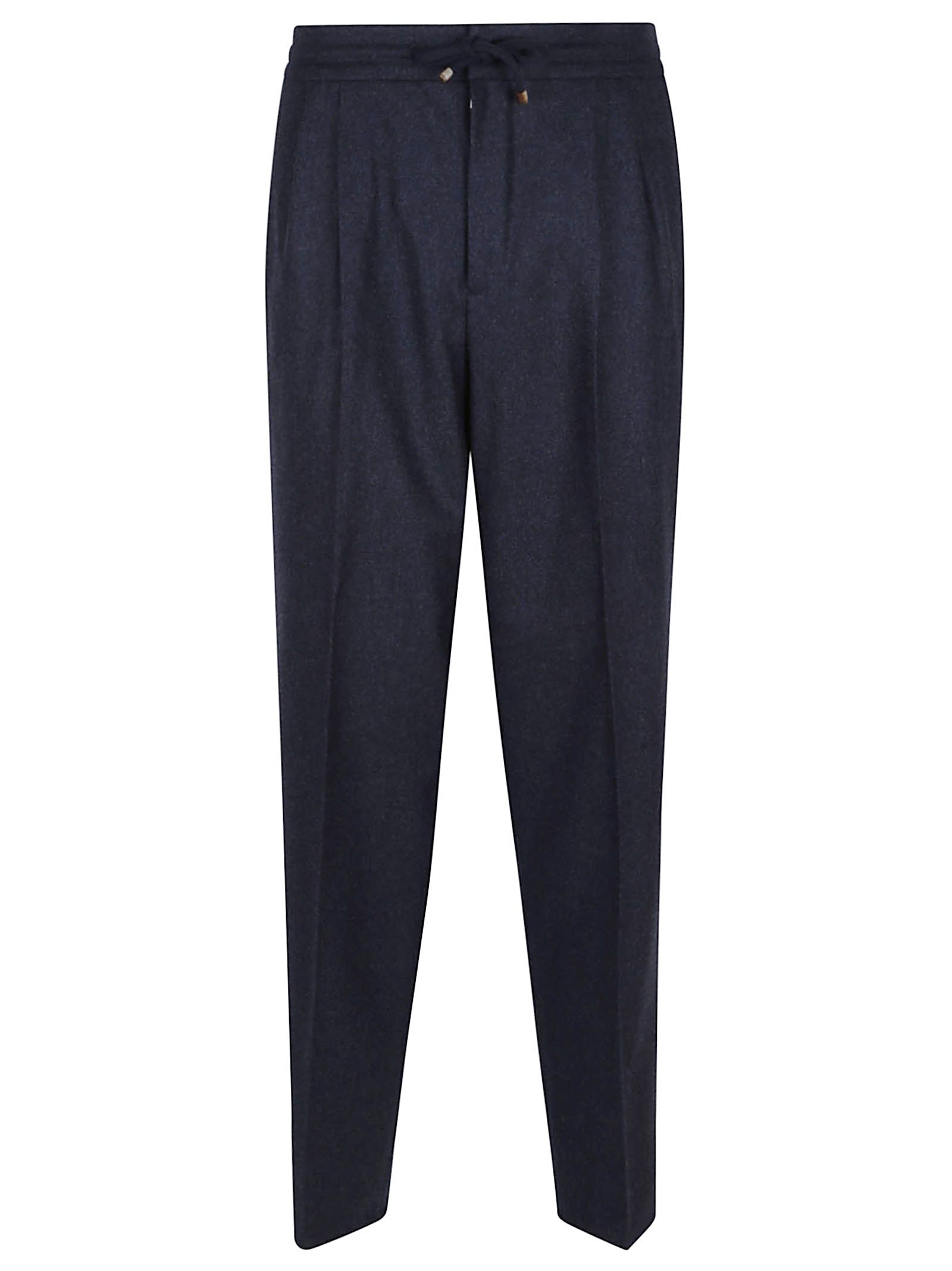 Pantalone in flanella di lana vergine di BRUNELLO CUCINELLI.Vita con coulisse; doppia pince sul davanti effetto sartoriale; tasche frontali oblique e tasche posteriori a filetto.Design leisure fit che lo rende moderno con volumi morbidi sul bacino, vita lievemente abbassata e gamba che segue le forme del corpo. Caratterizzato da trama diagonale della flanella.