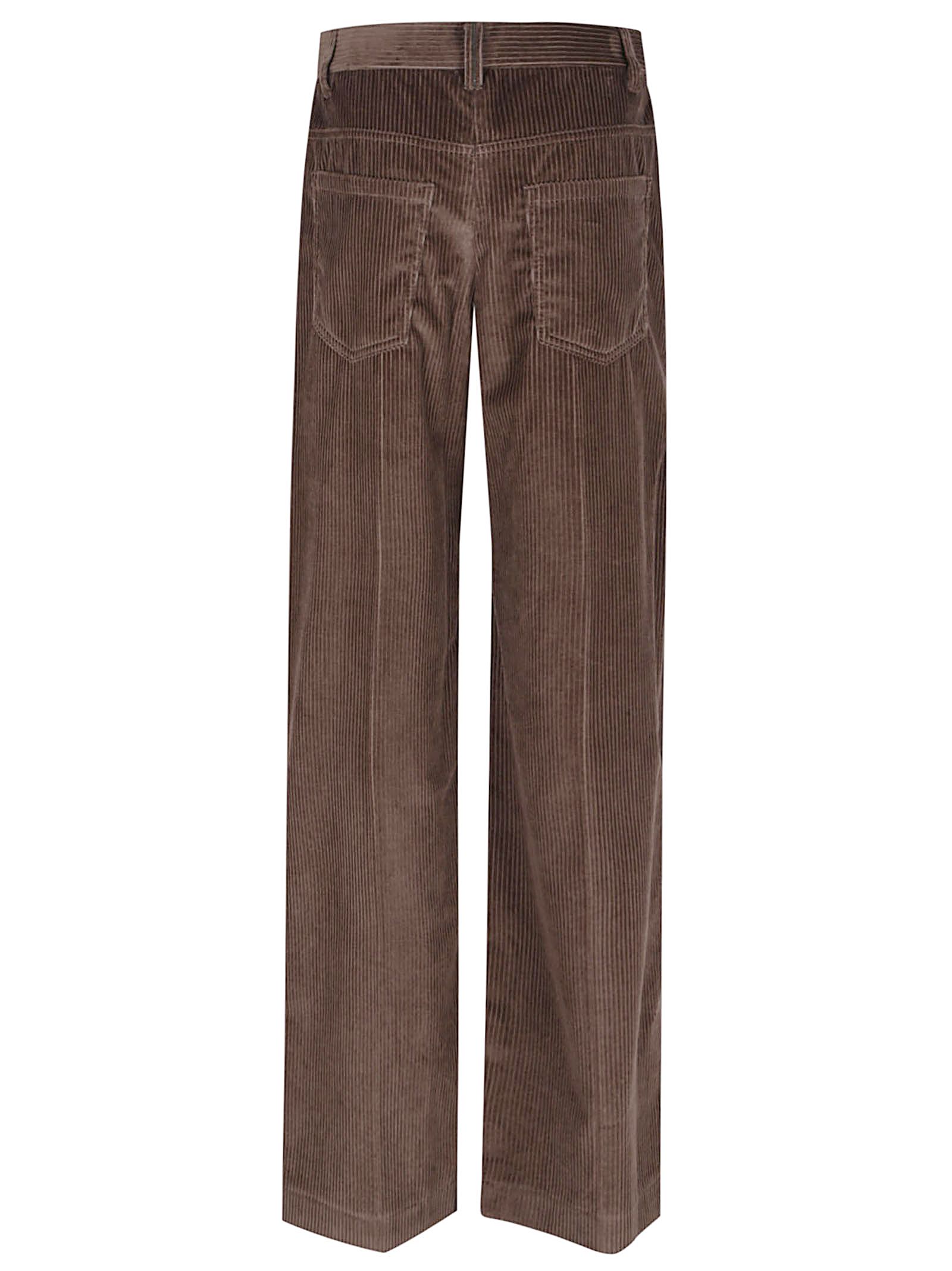 Pantalone Loose in velluto di cotone di BRUNELLO CUCINELLI.Chiusura a zip con gancetto in metallo e controbottone; tasche frontali e tasche posteriori; pince; passanti per cintura. Caratterizzato da lavorazione a coste con texture tridimensionale e decorazione in monile Nickel-free.