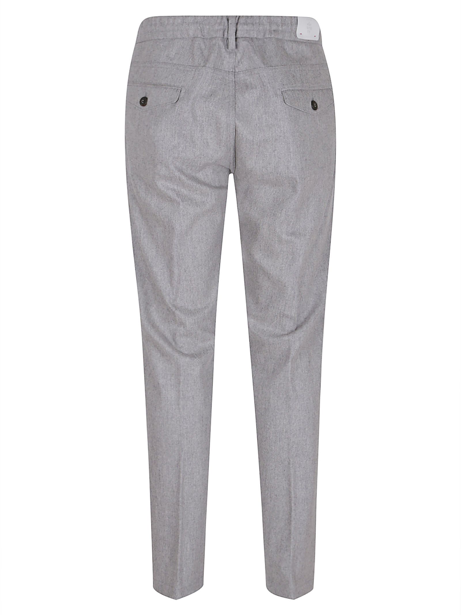Pantalone in flanella stretch con effetto jersey, morbida e confortevole, ideale per la mezza stagione.Trattamento "old": dona al pantalone un aspetto vissuto, con sfumature di colore evidenti vicino alle cuciture.Cintura: passanti fatti a mano, con coulisse integrata e elastico posteriore per una vestibilità comoda.Caratterizzato da due tasche laterali a filetto, due tasche posteriori con patta e taschino porta monete interno nella tasca destra