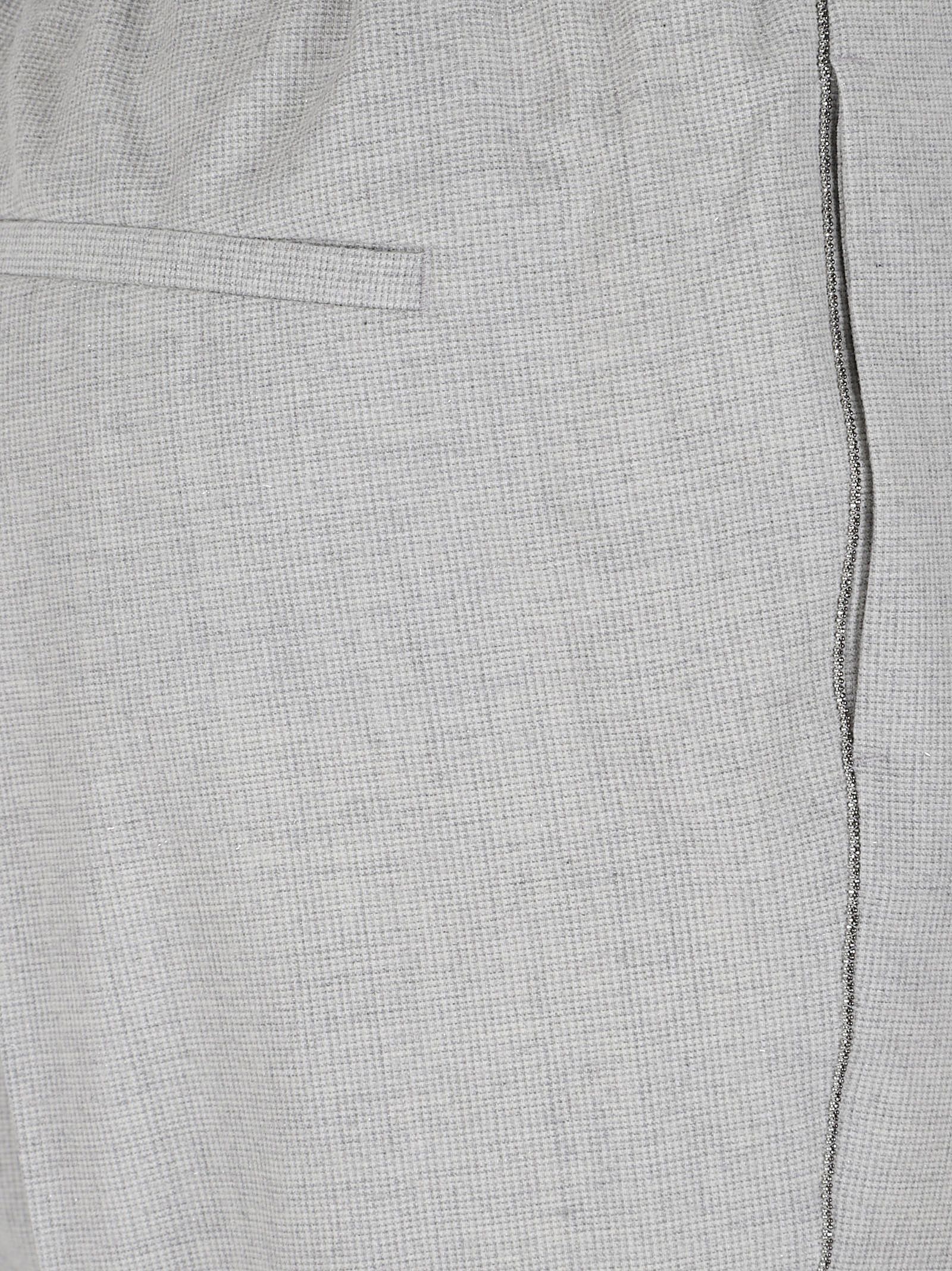 Pantalone in lana di PESERICO.Elastico in vita; due tasche a filetto anche sul retro; design vestibilità regolare. Caratterizzato dall`iconico Punto Luce presenti lungo i lati.