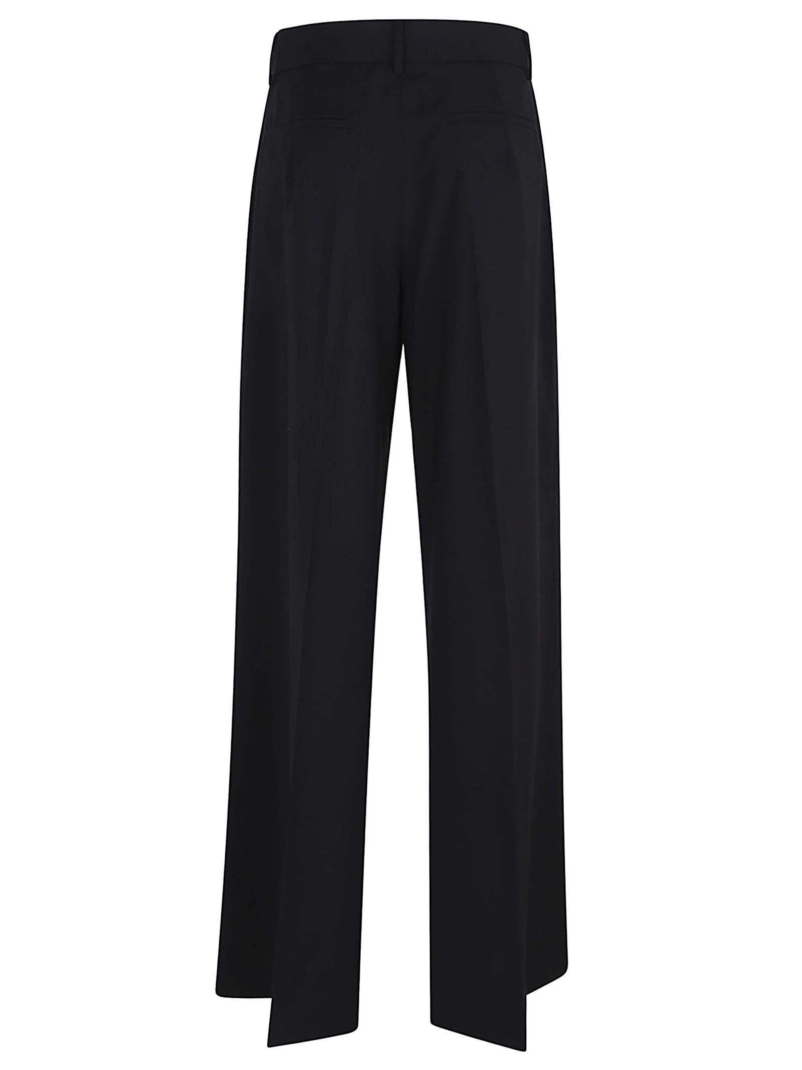 Pantalone in pura lana natural stretch di SPORT MAXMARA.Vita bassa; chiusura asimmetrica con bottone; pieghe stirate in vita e piega stirata sulla gamba; tasche laterali alla francese e posteriori a filetto; design vestibilità regolare, oversize con gamba larga, costruzione maschile.