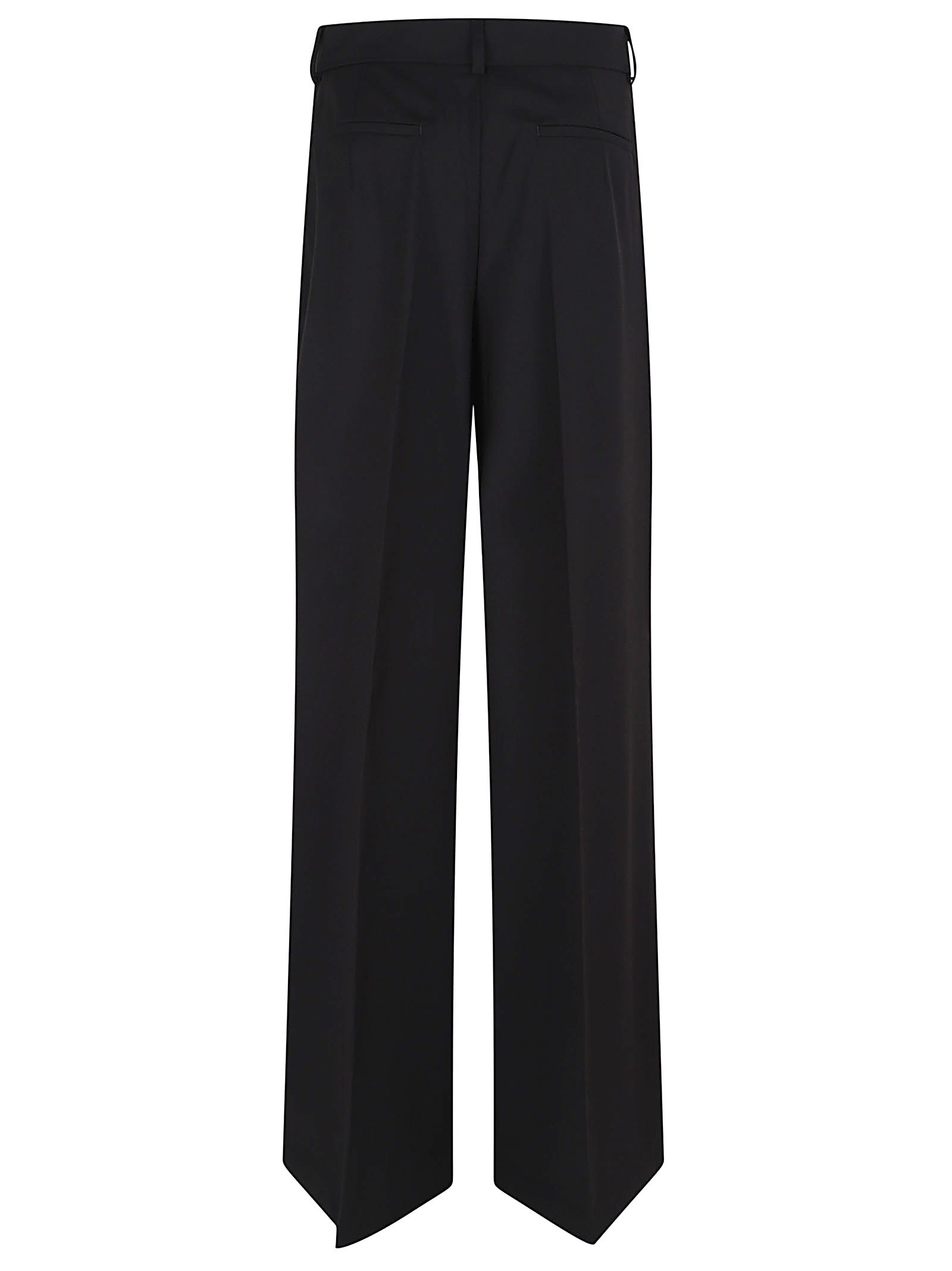 Pantalone in pura lana natural stretch di SPORT MAXMARA.Vita bassa; chiusura asimmetrica con bottone; pieghe stirate in vita e piega stirata sulla gamba; tasche laterali alla francese e posteriori a filetto; design vestibilità regolare, oversize con gamba larga, costruzione maschile.