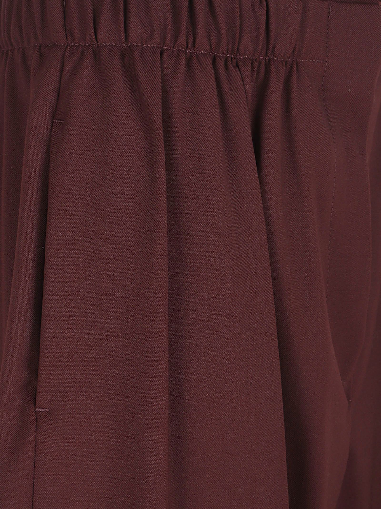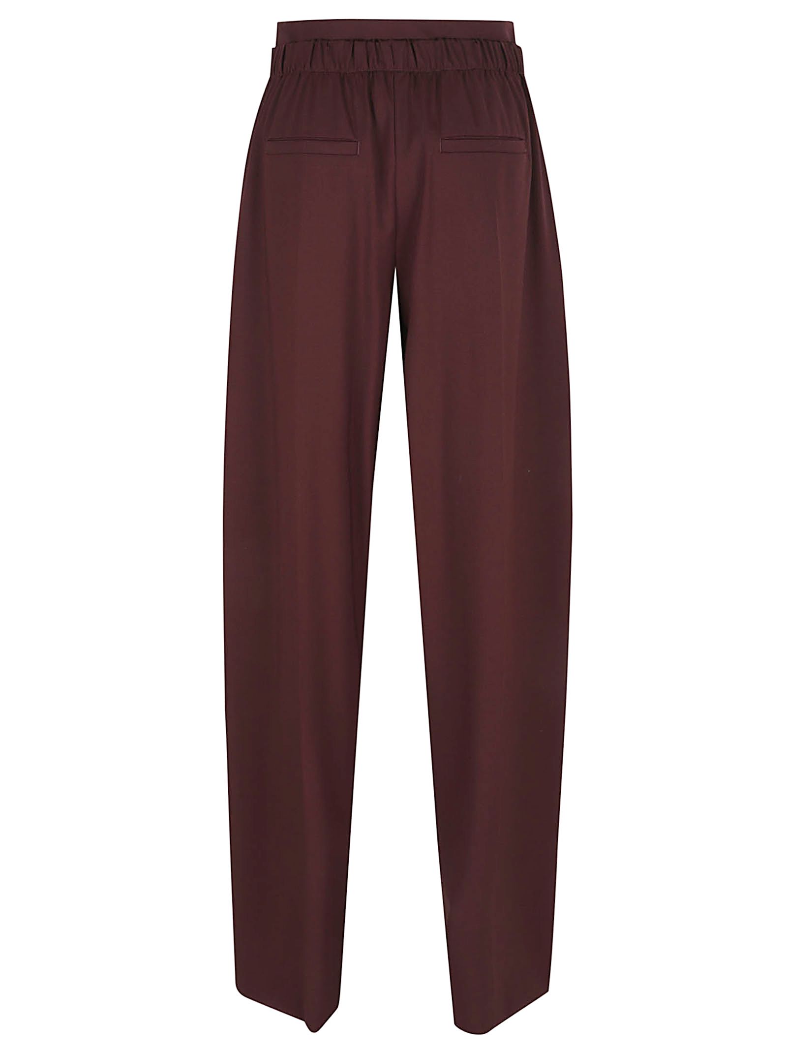 Pantalone QUITO in gabardina di lana stretch di SPORT MAXMARA.Vita leggermente bassa; chiusura con bottone a pressione personalizzato e zip nascosta; tasche laterali inserite e posteriori a filetto; design volume ampio sulla gamba, stirata davanti e dietro e arricciature in vita.
