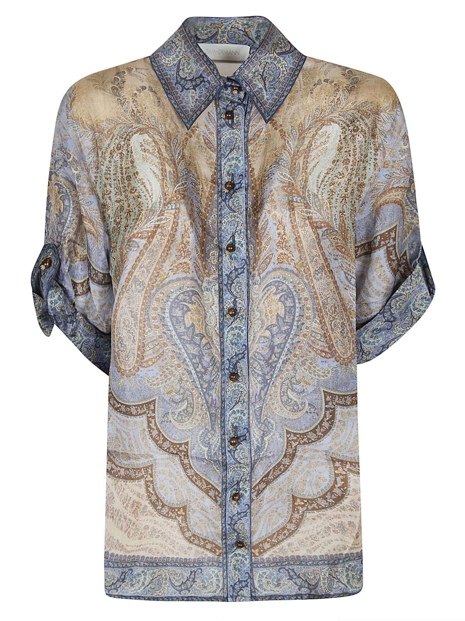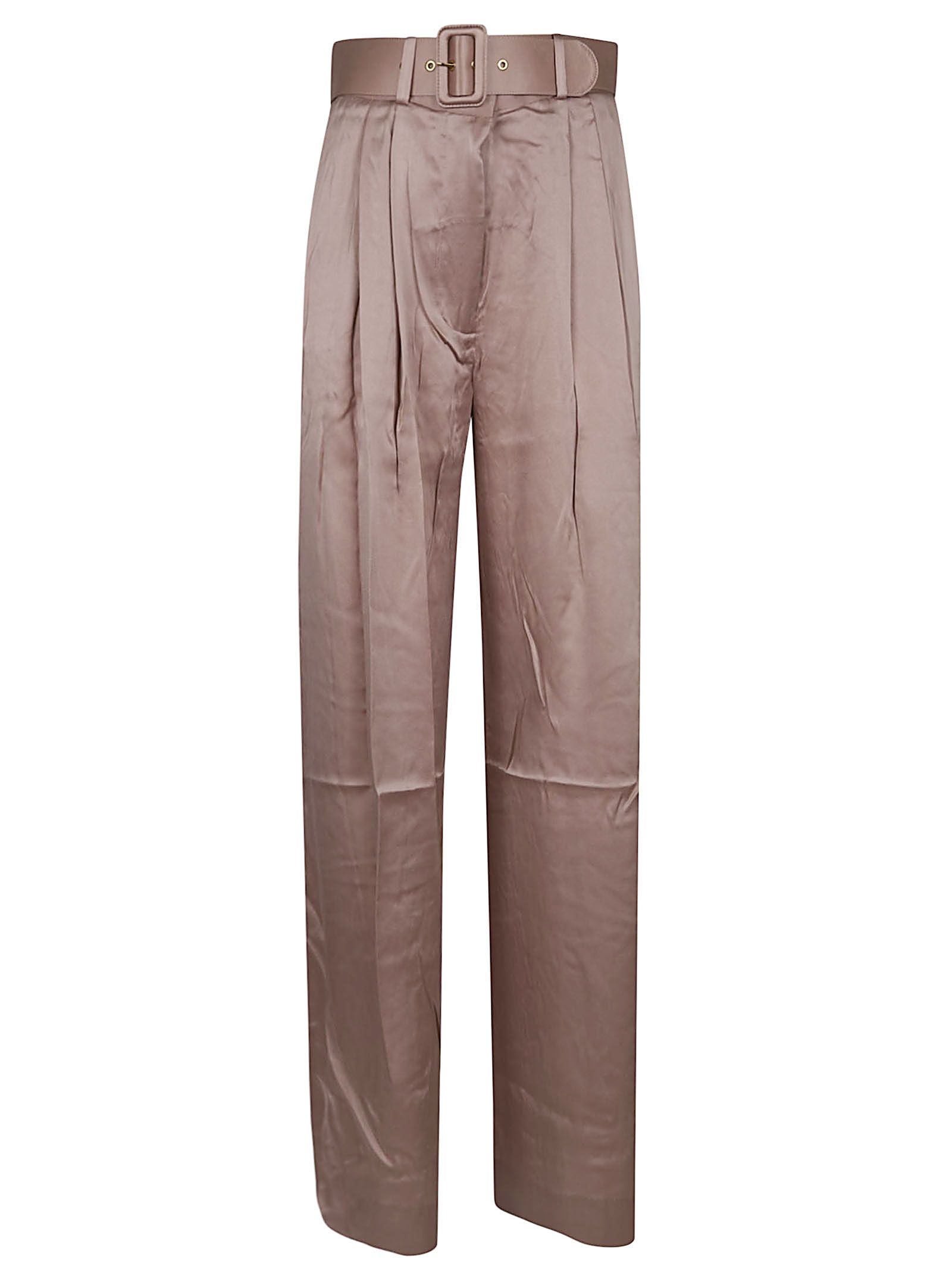 Pantaloni Illustration Tuck in seta BY ZIMMERMANN.Vita alta; chiusura con zip e gancio nascosto; tasche laterali; passanti per cintura.Design gamba larga con pieghe.Dettaglio cintura rimovibile dello stesso materiale.
