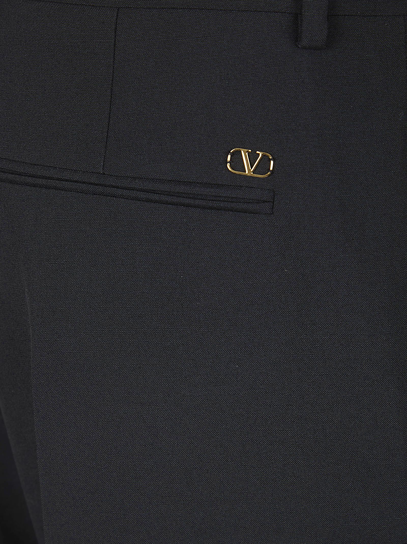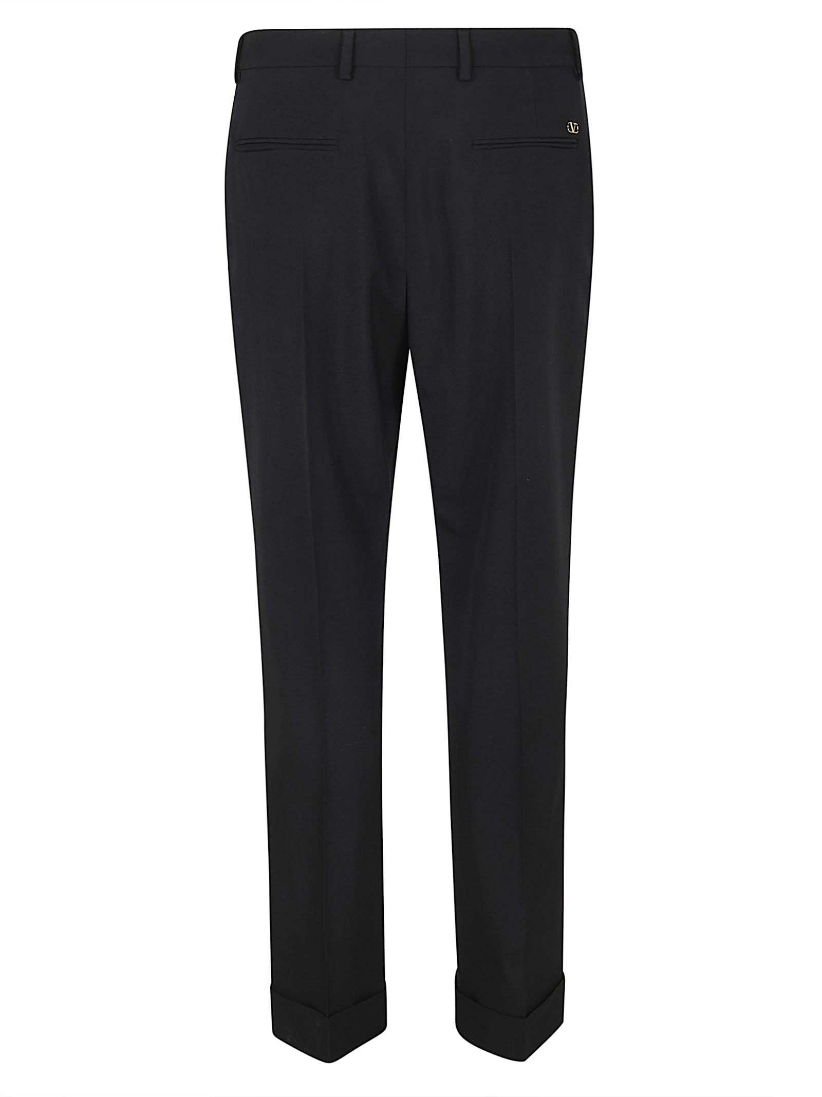 Pantalone in lana di VALENTINO GARAVANI.Chiusura con zip e gancio nascosti; passanti per cintura; due tasche laterali e due tasche sul retro; design vestibilità slim.Caratterizzato da risvolto e VLogo applicato su tasca sul retro.