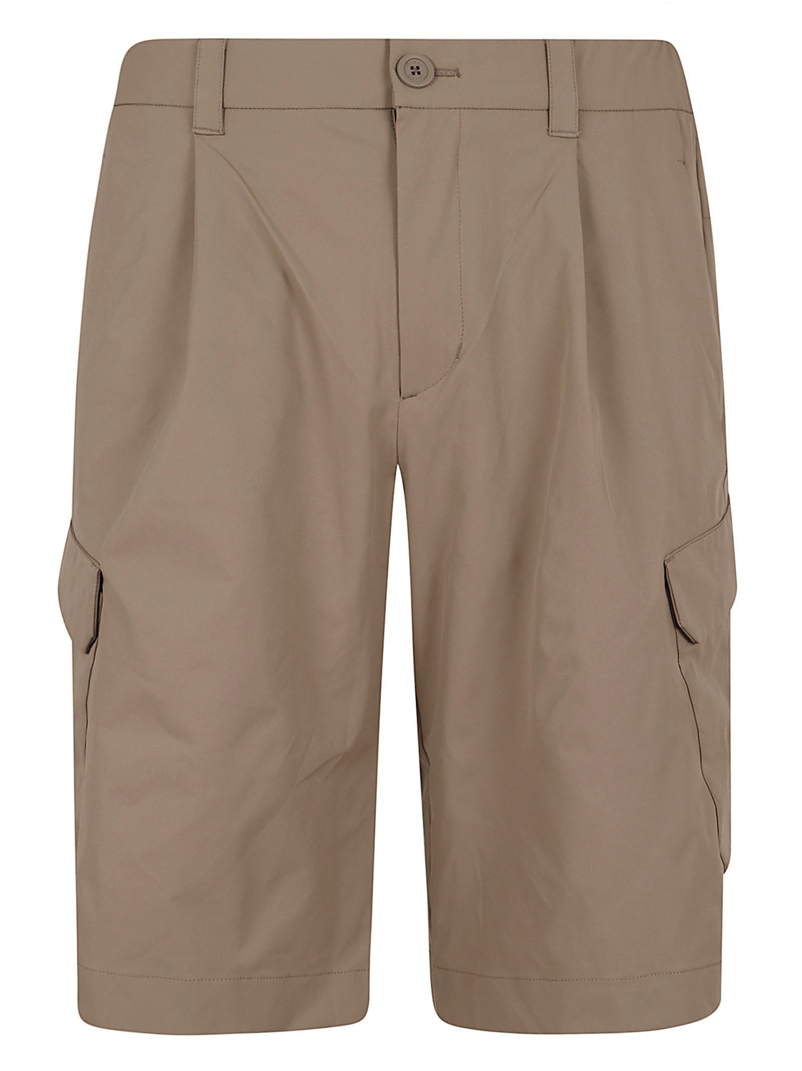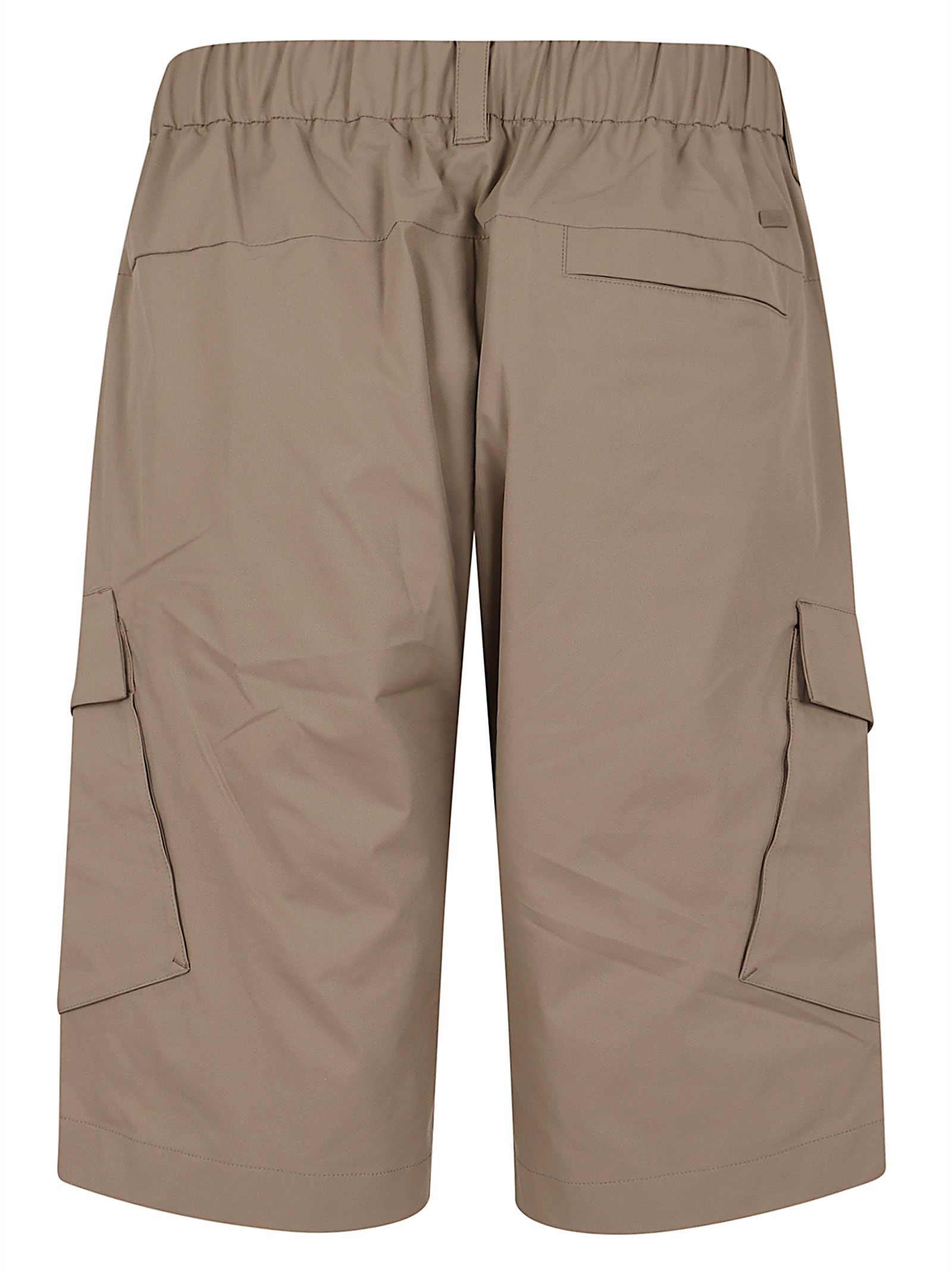 Questi bermuda cargo da uomo sono un modello Herno, caratterizzato da un design che unisce un`estetica pulita alla funzionalità tipica dell`abbigliamento contemporaneo. Il modello presenta delle pinces frontali che ne definiscono la linea elegante, pur mantenendo un taglio sportivo.È dotato di tasche anteriori "all`italiana", pratiche tasche cargo laterali con patta e una tasca posteriore a filetto con bottone automatico.La vita è rifinita con un elastico sul retro per migliorare la vestibilità e il comfort durante l`uso estivo.