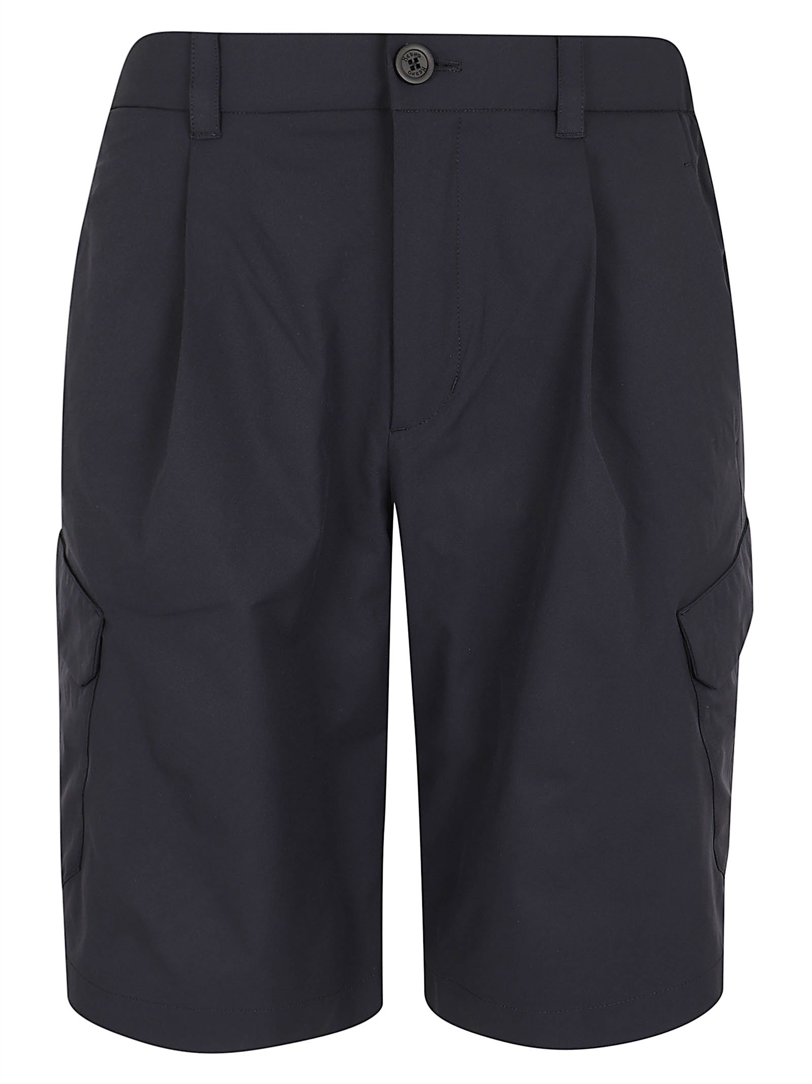 Questi bermuda cargo da uomo sono un modello Herno, caratterizzato da un design che unisce un`estetica pulita alla funzionalità tipica dell`abbigliamento contemporaneo. Il modello presenta delle pinces frontali che ne definiscono la linea elegante, pur mantenendo un taglio sportivo.È dotato di tasche anteriori "all`italiana", pratiche tasche cargo laterali con patta e una tasca posteriore a filetto con bottone automatico.La vita è rifinita con un elastico sul retro per migliorare la vestibilità e il comfort durante l`uso estivo.