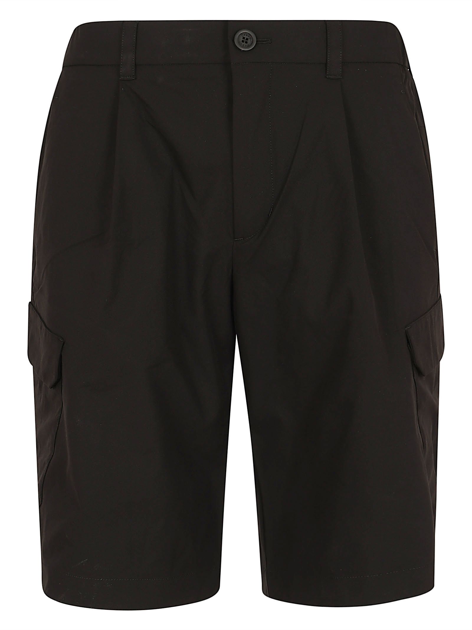 Questi bermuda cargo da uomo sono un modello Herno, caratterizzato da un design che unisce un`estetica pulita alla funzionalità tipica dell`abbigliamento contemporaneo. Il modello presenta delle pinces frontali che ne definiscono la linea elegante, pur mantenendo un taglio sportivo.È dotato di tasche anteriori "all`italiana", pratiche tasche cargo laterali con patta e una tasca posteriore a filetto con bottone automatico.La vita è rifinita con un elastico sul retro per migliorare la vestibilità e il comfort durante l`uso estivo.