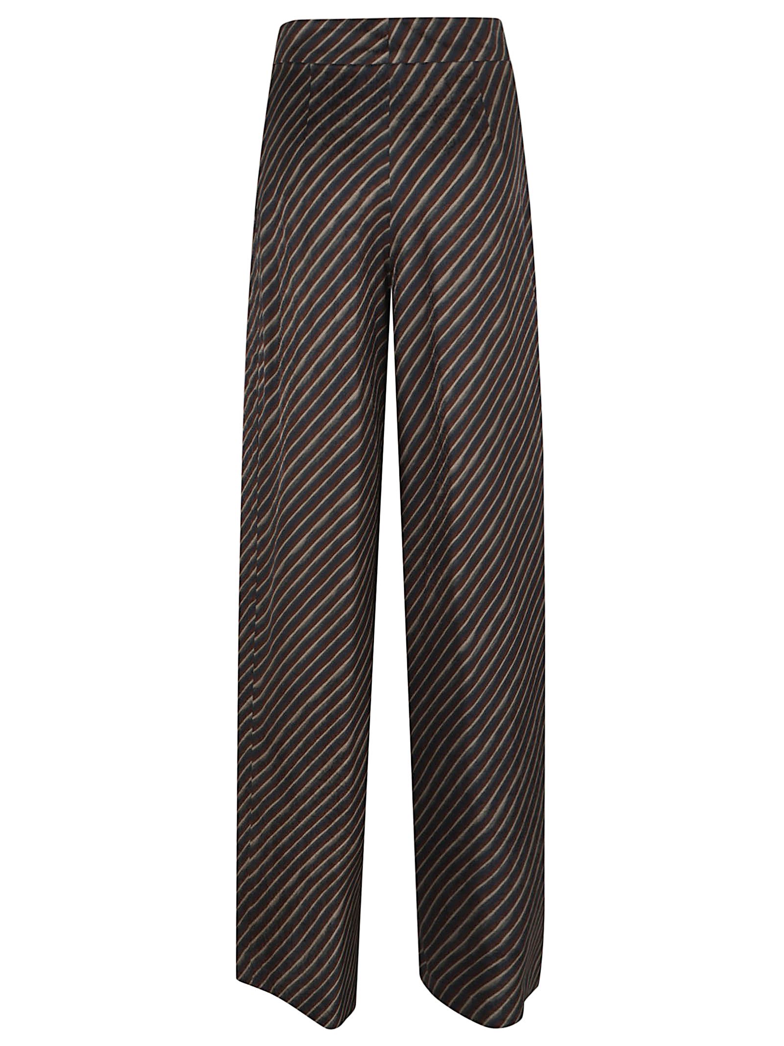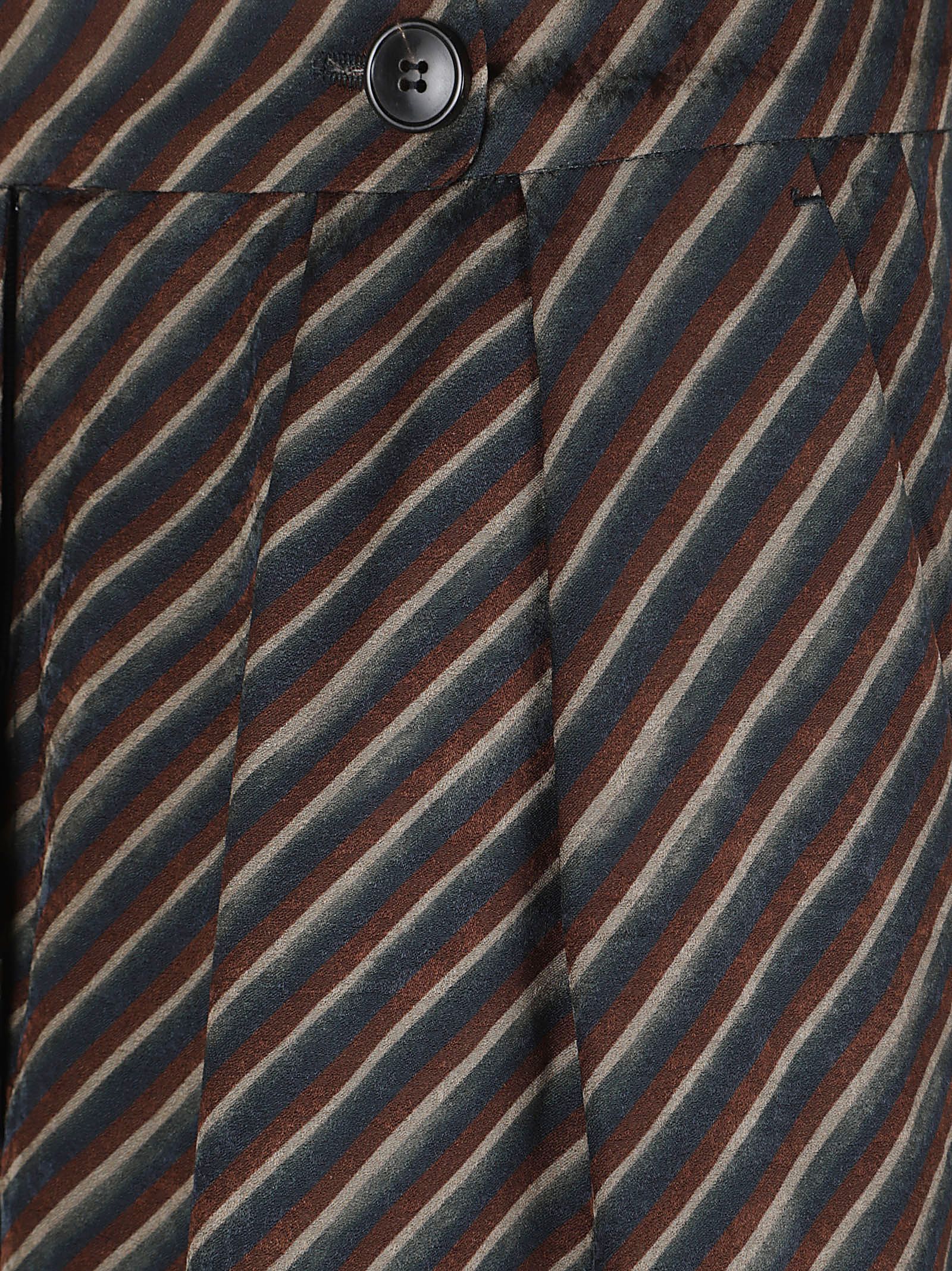 Pantaloni a strisce strisce diagonali marroni davanti plissè vita alta chiusura con bottone