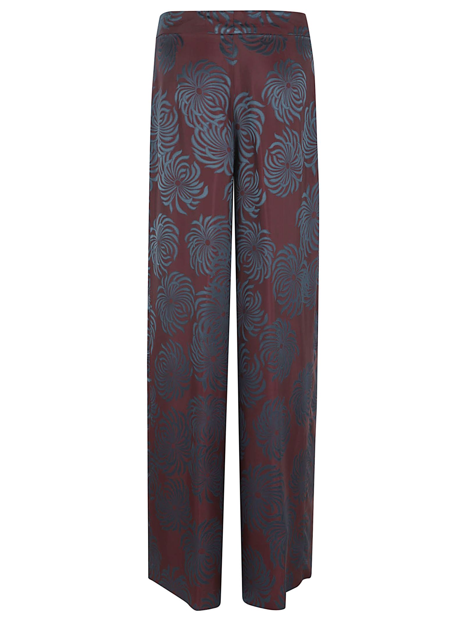 Pantaloni bordo con fiori disegnati chiusura frontale con bottoni due tasche laterali a fessura orlo dritto`
