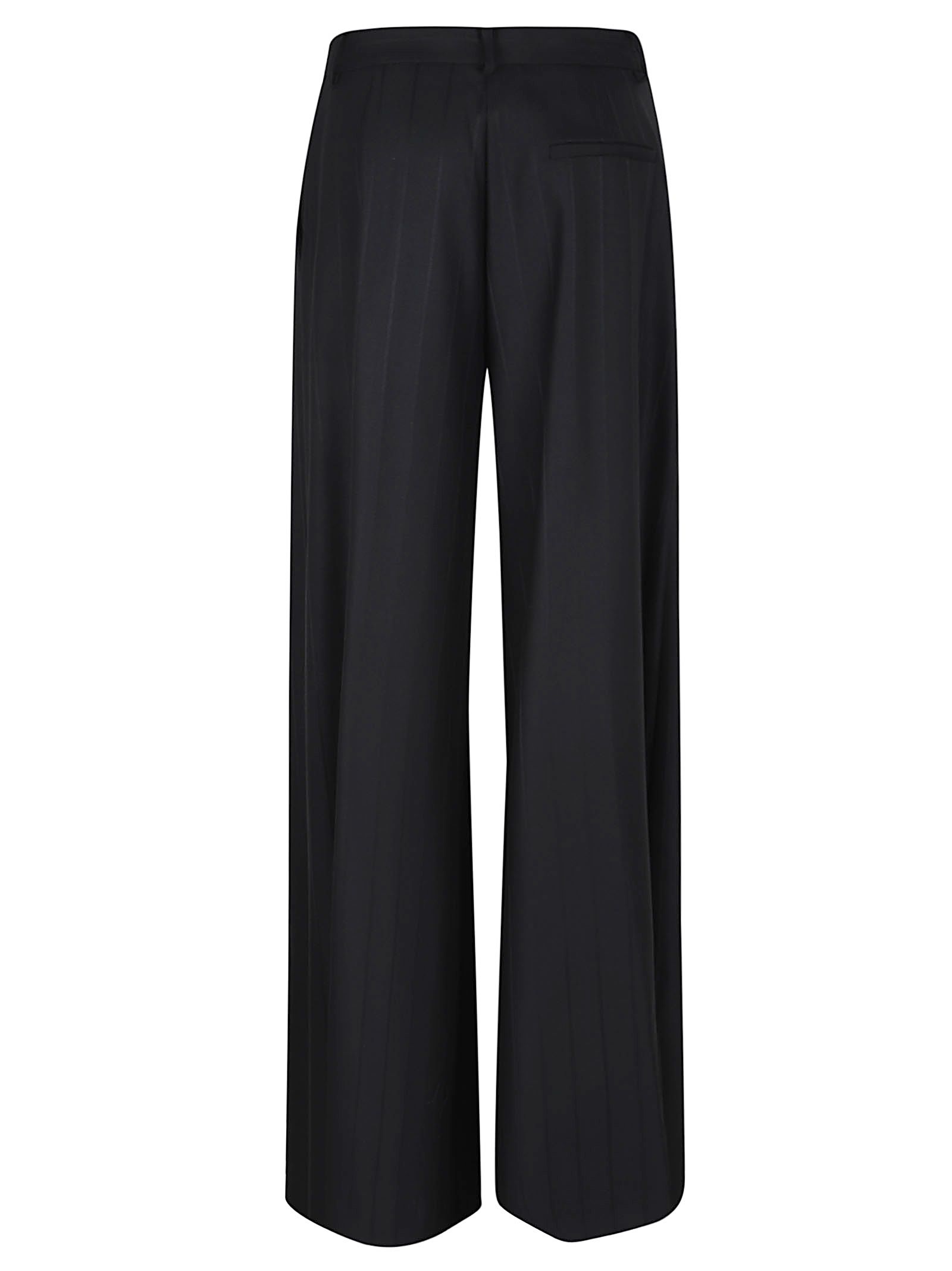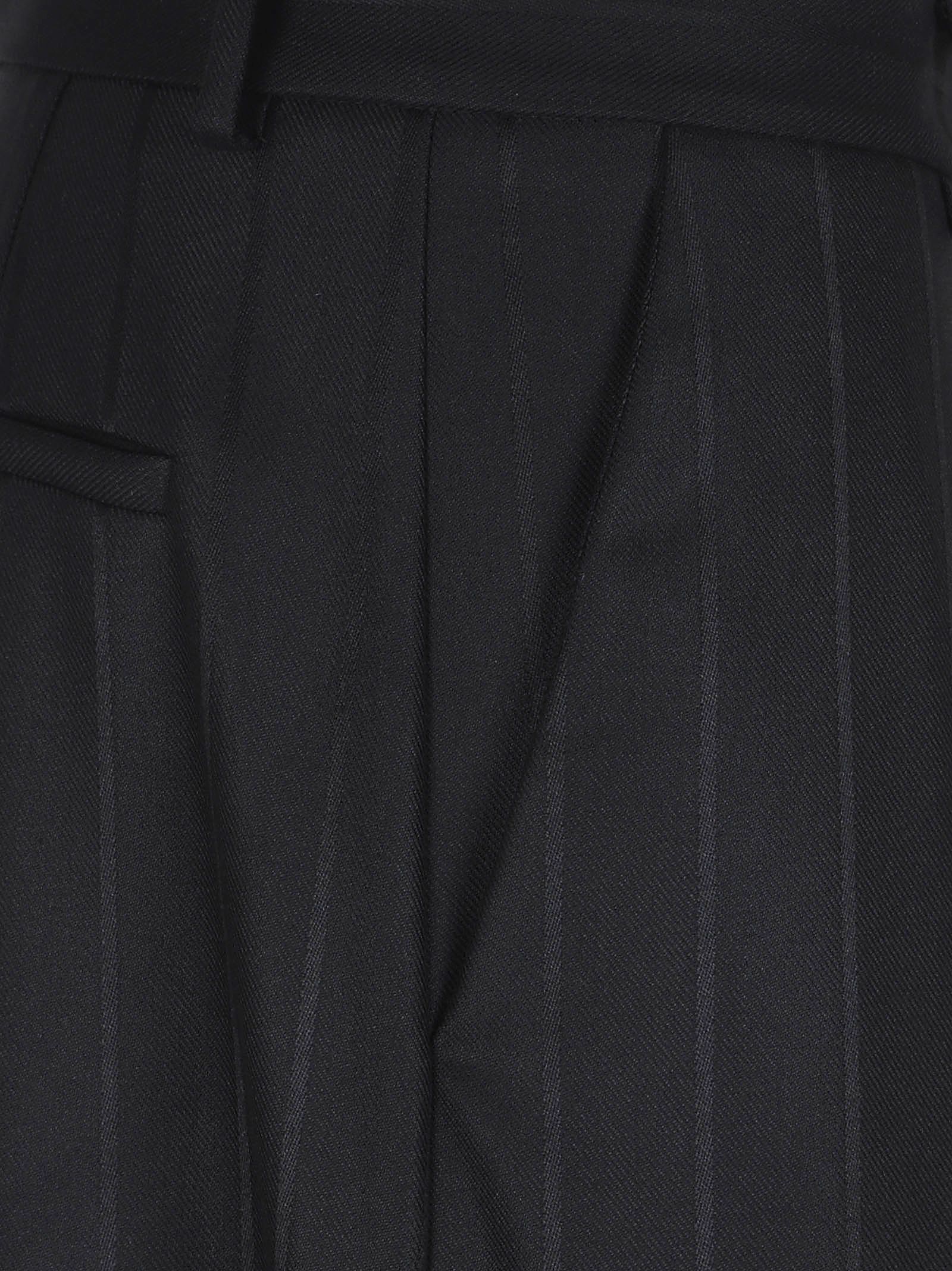 Pantalone TARA in jacquard gessato di THE ANDAMANE.Chiusura con zip, gancio e bottone; passanti per cintura; design con pieghe anteriori che si allargano in una gamba super ampia alla caviglia.
